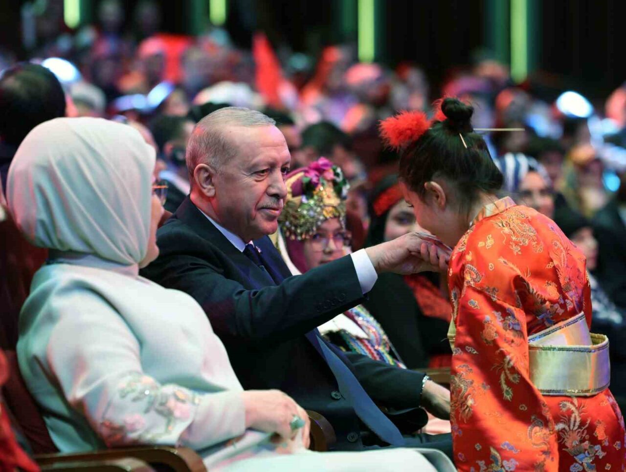 Cumhurbaşkanı Recep Tayyip Erdoğan, “İnsanlık zincirinin ebediyet halkası olan siz çocuklarımız inşallah geleceğimizi şekillendireceksiniz. Kötülere ve kötülüklere rağmen bu dünyayı sizler güzelleştireceksiniz. Şunu özellikle bilmenizi isterim. Sizler bizim birer gönül ve kültür elçilerimizsiniz. Bu bakımdan aranızdaki iletişim ve irtibatı koparmamaya özen gösterin. Bilginizi, tecrübenizi, tavsiyelerinizi, hayallerinizi birbirinizle paylaşın. İyinin, doğalının ve güzelin peşinden gitmekten asla vazgeçmeyin” dedi.
