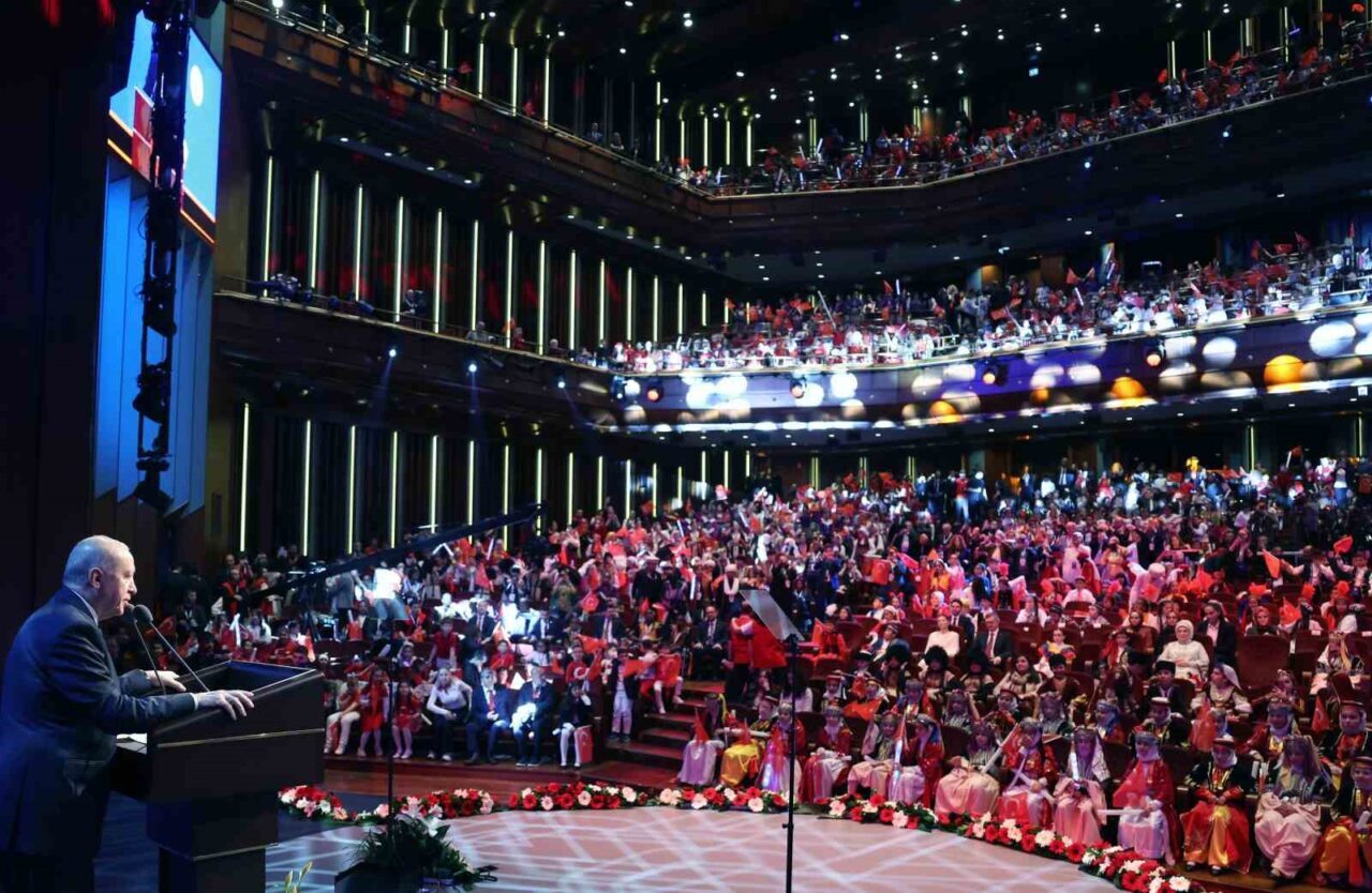 Türkiye’nin geleceğini çocukların şekillendireceğini vurgulayan Cumhurbaşkanı Erdoğan, “Sizlerden de Gazzeli, Lübnanlı çocuklar başta olmak üzere sıkıntılı günler geçiren kardeşlerinizi dualarınızda unutmamanızı özellikle rica ediyorum. İnsanlık zincirinin ebediyet halkası olan siz çocuklarımız inşallah geleceğimizi şekillendireceksiniz. Kötülere ve kötülüklere rağmen bu dünyayı sizler güzelleştireceksiniz. Şunu özellikle bilmenizi isterim. Sizler bizim birer gönül ve kültür elçilerimizsiniz. Bu bakımdan aranızdaki iletişim ve irtibatı koparmamaya özen gösterin. Bilginizi, tecrübenizi, tavsiyelerinizi, hayallerinizi birbirinizle paylaşın. İyinin, doğalının ve güzelin peşinden gitmekten asla vazgeçmeyin. Şunu da hiçbir zaman unutmayın sevgili çocuklar. Her biriniz yarın birer sanatçı, sporcu, bilim adamı, öğretmen, zanaatkar, mühendis, siyasetçi, doktor, iş insanı olarak ülkenize hizmet edeceksiniz. Bu yolculukta zorluklarla karşılaşsanız dahi umutsuzluğa lütfen kapılmayın. Her zorlukla beraber bir kolaylığın her karanlığın sonunda bir aydınlığın her çabanın sonunda inşallah bir başarının olduğunu aklınızdan hiç çıkarmayın” dedi.