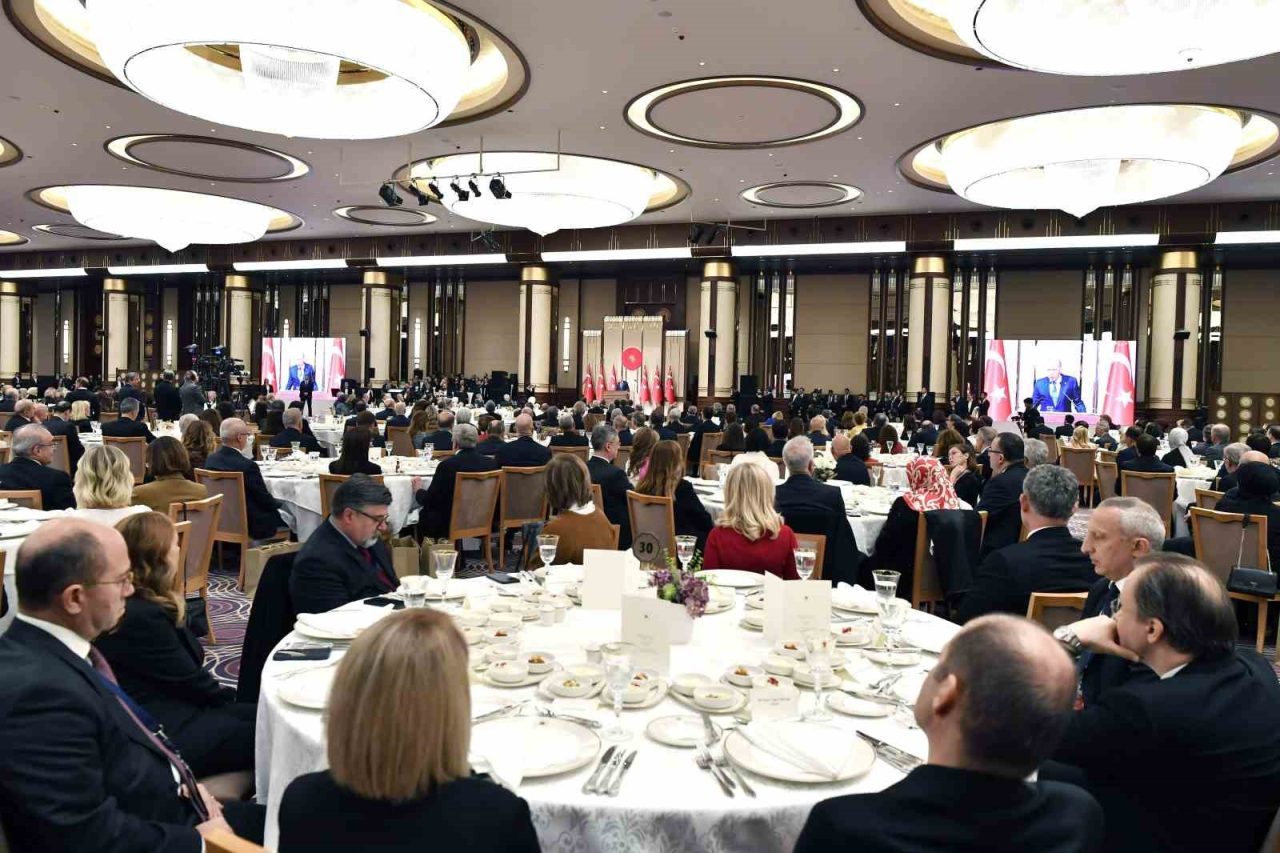 Büyükelçilere hitap eden Erdoğan, “Sizler de görev yaptığınız yerlerde görüyorsunuz. Türkiye’nin profili, sadece mücavir bölgelerde değil; uzak coğrafyalarda da yükselmekte, ülkemizin önünde yeni işbirliği kapıları açılmaktadır. Türkiye’ye yönelik ilginin arttığını memnuniyetle müşahede ediyoruz. Hiç ummadığınız yerlerde, dünyanın en ücra köşelerinde Türkçe konuşan, Türkiye’yi bilen, tanıyan, takip eden sayısız insanla karşılaşıyoruz. Türkiye mezunu öğrenciler, bugün bakan, üst düzey bürokrat, iş adamı, siyasetçi, diplomat olarak ülkelerine başarıyla hizmet ediyor. Sizin de gayretlerinizle inşallah bu tarihi fırsatları en güzel şekilde, en etkin şekilde değerlendireceğiz. Burada şunu da özellikle vurgulamak mecburiyetindeyim: Büyük devlet olmak, nerede yaşarsa yaşasın vatandaşına sahip çıkmak demektir. Dünyanın yüzde 90’dan fazla ülkesinde hayat kurmuş, bu şekilde kök salmış 7 milyonluk Türk diasporası, millet olarak bizim canımızdan bir parçadır. Yurt dışında yaşayan vatandaşlarımız, İslam ve yabancı düşmanlığı başta olmak üzere ciddi tehditlerle karşı karşıya bulunuyor. Vatandaşlarımıza yurt dışında gerekli hizmetlerin sağlanması ve haklarının savunulmasında büyükelçilerimizin canla başla çalıştığının farkındayım. Sizlerden aynı hassasiyetle çalışmaya devam etmenizi bekliyorum” dedi.