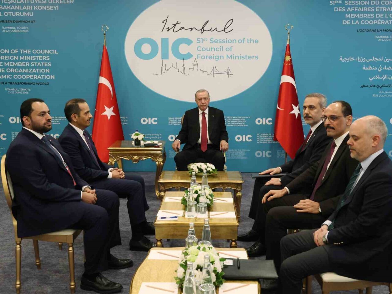 Cumhurbaşkanı Recep Tayyip Erdoğan, Katar Başbakanı Muhammed Abdurrahman Al- Thani’yi kabul etti. Lütfi Kırdar Kongre Merkezi’ndeki görüşmede, Dışişleri Bakanı Hakan Fidan, MİT Başkanı İbrahim Kalın, Cumhurbaşkanı Dış Politika ve Güvenlik Başdanışmanı Akif Çağatay Kılıç da hazır bulundu.
