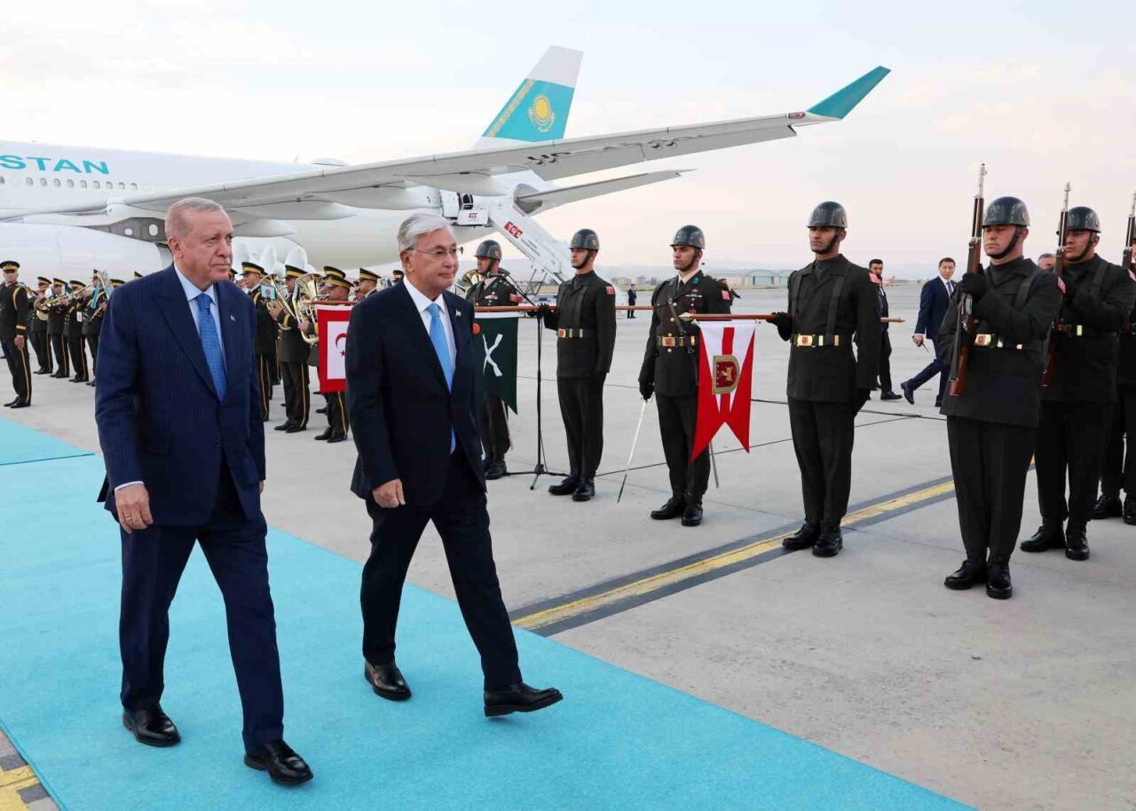 Cumhurbaşkanı Recep Tayyip Erdoğan, resmi temaslarda bulunmak üzere Türkiye’ye gelen Kazakistan Cumhurbaşkanı Kasım Cömert Tokayev’i Esenboğa Havalimanı’nda resmi törenle karşıladı.