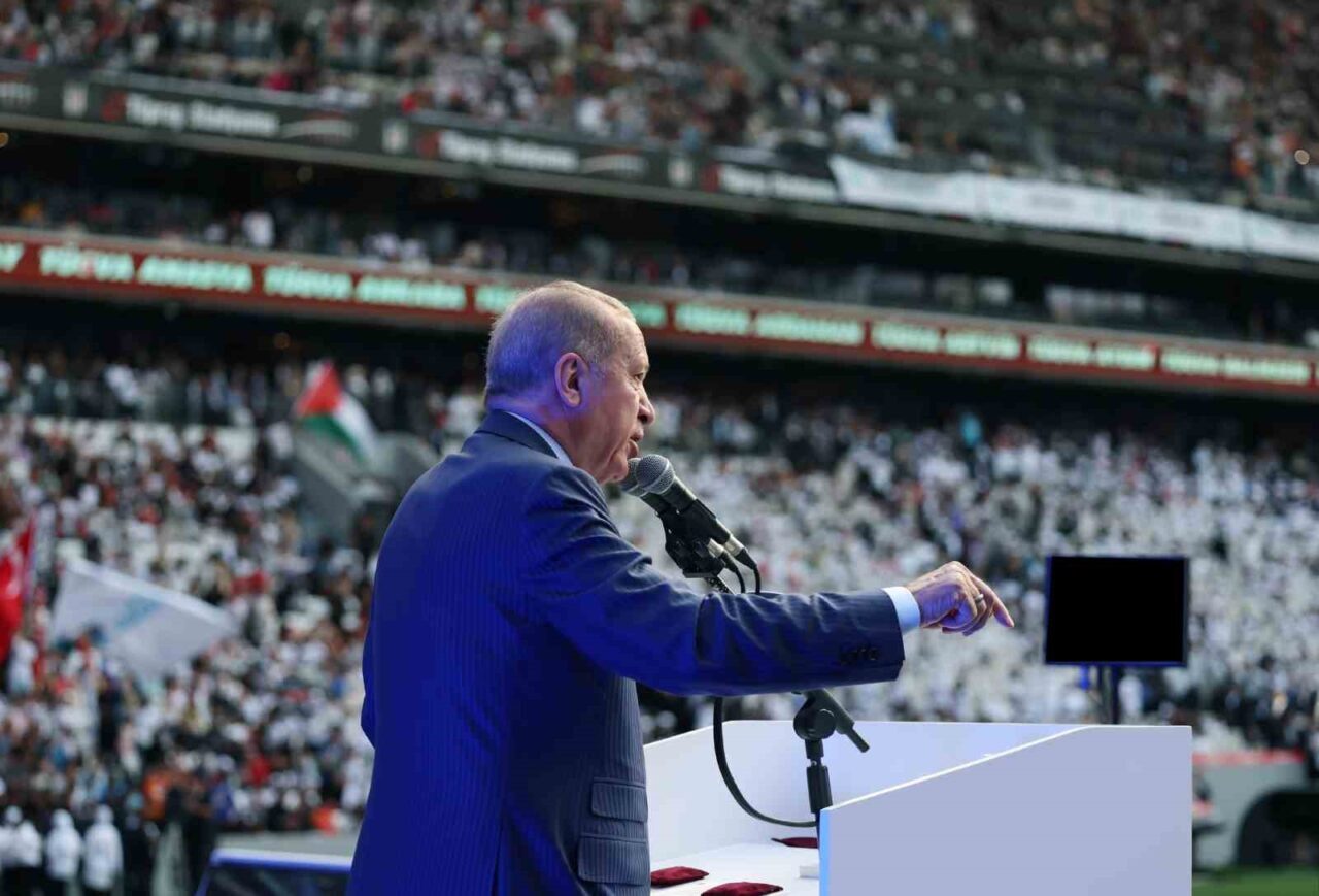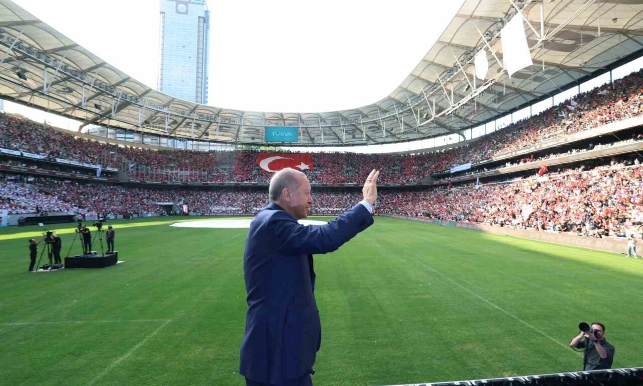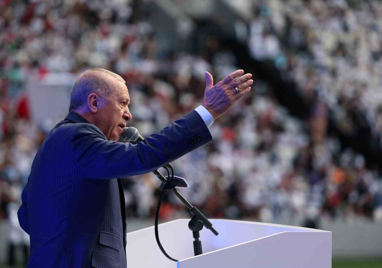 Erdoğan, “Milletimizin hasretini çektiği büyük ve güçlü Türkiye’ye kavuşmamıza çok az kaldı. Zulümle, krizle, çatışmayla boğuşan coğrafyamızda barış rüzgarlarının esmesine inanın çok az kaldı. Allah’ın izniyle sizlere terörün olmadığı her metrekaresinde huzurun, güvenliğin, refahın, kardeşliğine kemer olduğu bir Türkiye’yi teslim edeceğiz. Son nefesimize kadar sizlerin hizmetinde olmaya inşallah devam edeceğiz” şeklinde konuştu.