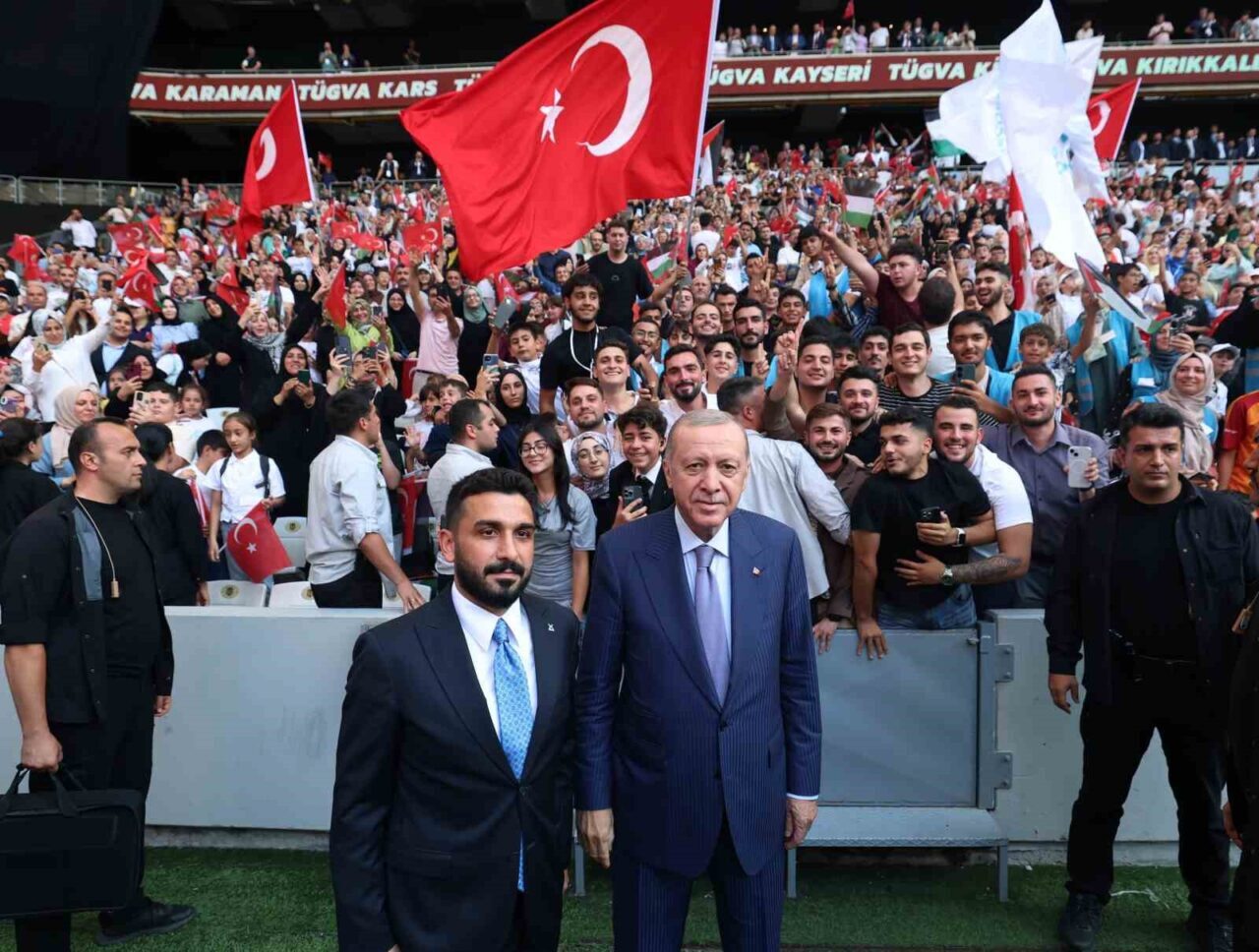 “Sevgili gençler, değerli kardeşlerim, şimdi bakıyorsunuz birileri çıkıyor bizim Filistin davasına olan sarsılmaz desteğimizi sorgulamaya kalkıyor” ifadelerini kullanan Cumhurbaşkanı Erdoğan, şunları kaydetti: