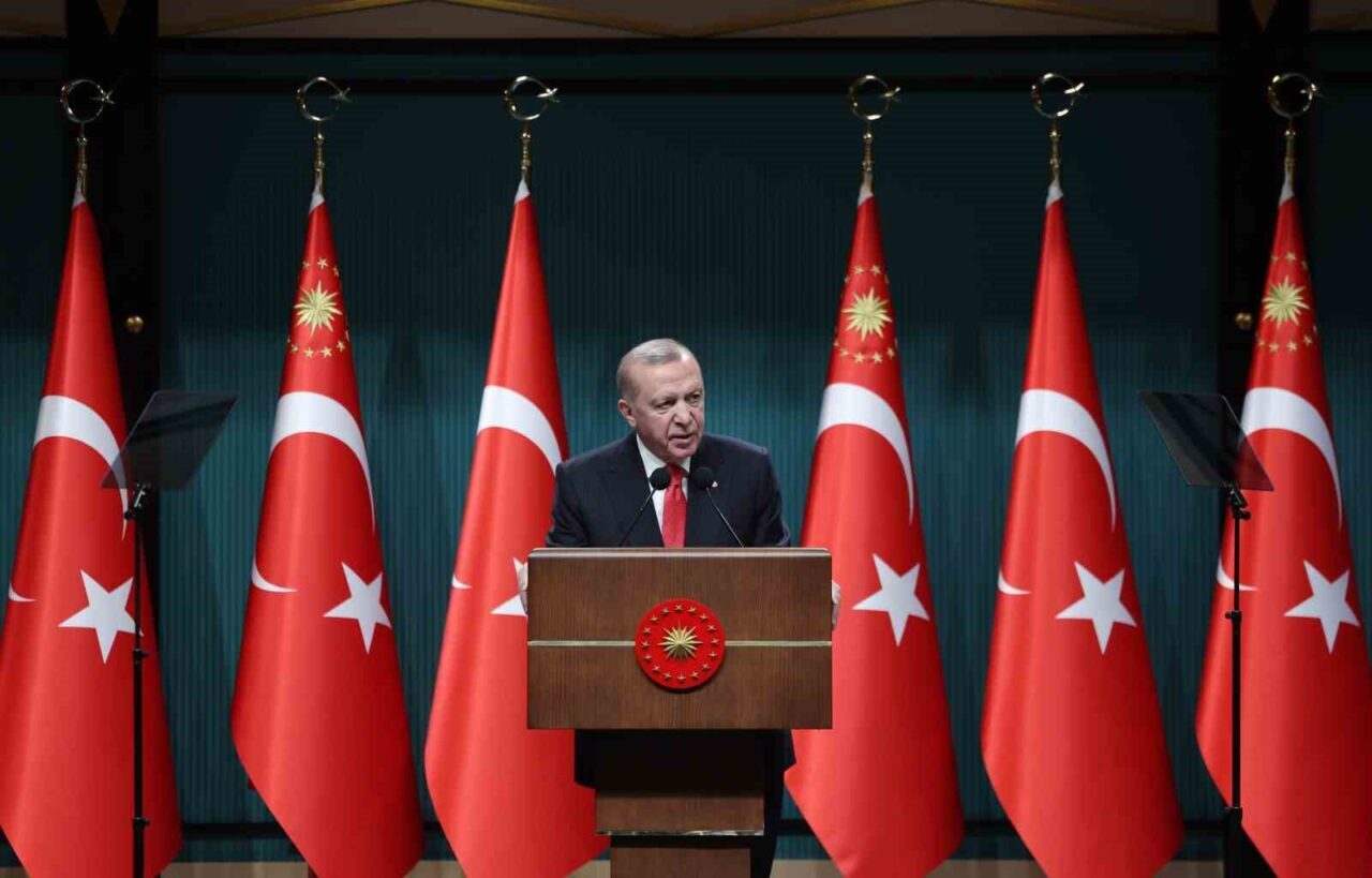 Son Kabine Toplantısı’ndan sonra iç siyasette ve dış politikada oldukça yoğun bir gündem içerisinde olduklarını belirten Cumhurbaşkanı Erdoğan, “Küresel düzeyde gerilimlerin tırmandığı bir dönemde özellikle de Türkiye olarak barışı, diyaloğu, müzakereyi merkeze alan politikamızla krizlerin sıcak çatışmaya dönüşmeden çözümü için çaba harcıyoruz. Tarihiyle büyük, vicdanıyla büyük, gerektiğinde cenk meydanlarında yazdığı destanlarıyla büyük bir milletin mensubu olduğumuzu unutmadan dünyanın neresinde olursa olsun hakkı savunuyor, adaleti savunuyor, kimseden çekinmeden doğruları cesaretli bir şekilde dile getiriyoruz. Ülkemizin hadiseler karşısındaki dik duruşu, yürekli, cesur, samimi ve ilkeli duruşu herkes tarafından takdirle takip ediliyor. Şunu aziz milletimizin ve bölgemizdeki herkesin çok iyi bilmesini istiyorum. Dünya sisteminde şiddetli depremlerin yaşandığı günümüzde Türkiye’nin yegane amacı dostlarının sayısını artırmak, yeni dostlar kazanmaktır. Anlaşmazlıklardan düşmanlık üretmek gayretinde değiliz. İhtilafları büyütmenin sorunları derinleştirmenin hesabı içinde değiliz. Ülkelerin egemenlik haklarına saygı gösterirken, herkesten de bizim hak ve hukukumuza saygılı davranmalarını bekliyoruz. Daha önce de söylediğim gibi şu an dünyada bir Türkiye rüzgarı esiyor. Türkiye’nin ne düşündüğü, ne yaptığı, yeni gelişmeler karşısında nerede durduğu, hangi adımları atacağı merak ediliyor” açıklamasında bulundu.