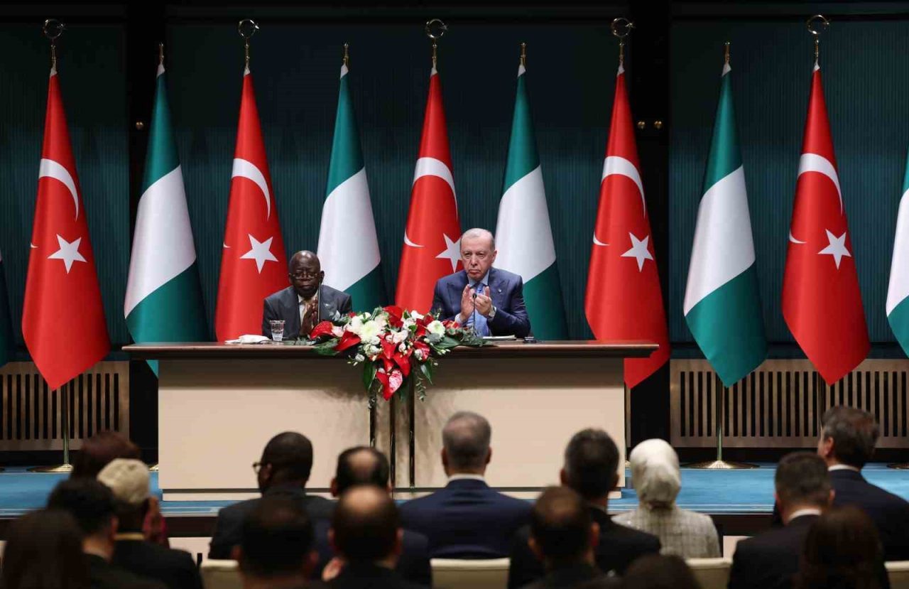 Cumhurbaşkanı Recep Tayyip Erdoğan, Nijerya Cumhurbaşkanı Bola Ahmed Tinubu ile düzenlediği ortak basın toplantısında, “Bugünkü görüşmelerimizde 5 milyar dolar ticaret hacmi hedefimize bağlılığımızı teyit ettik, atılması gereken adımları ele aldık. Ayrıca Nijerya’daki yatırımlarımızı destekleyecek fırsatları görüştük” dedi.