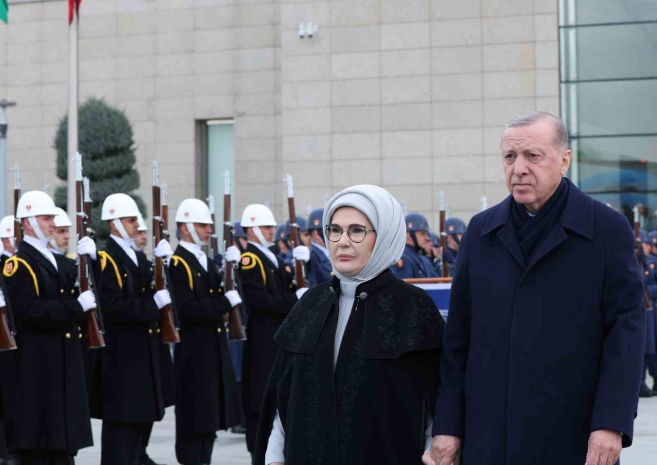 Cumhurbaşkanı Erdoğan ve eşi Emine Erdoğan, Özbekistan Cumhurbaşkanı Mirziyoyev’i Esenboğa Havalimanı’nda karşıladı.