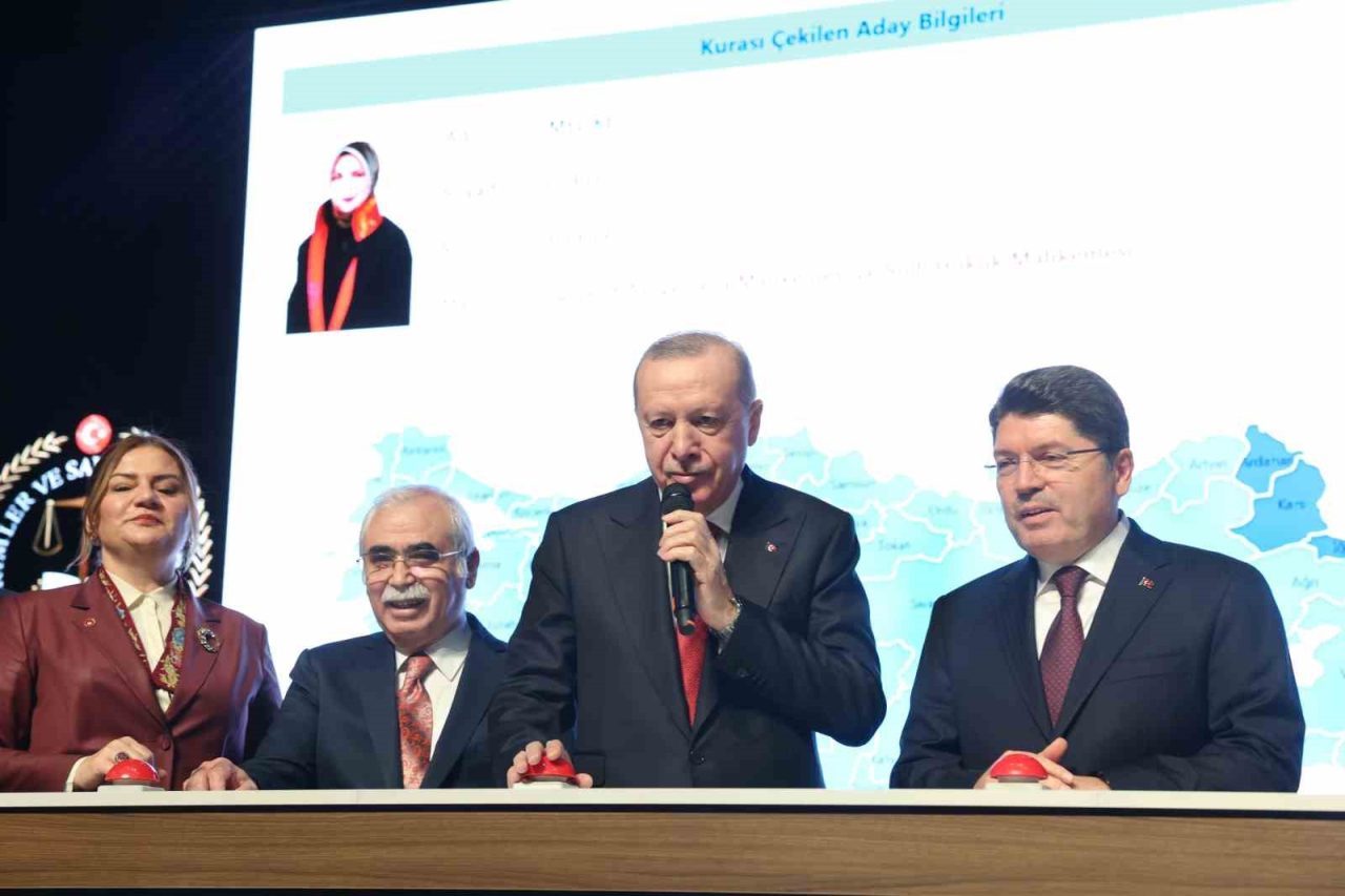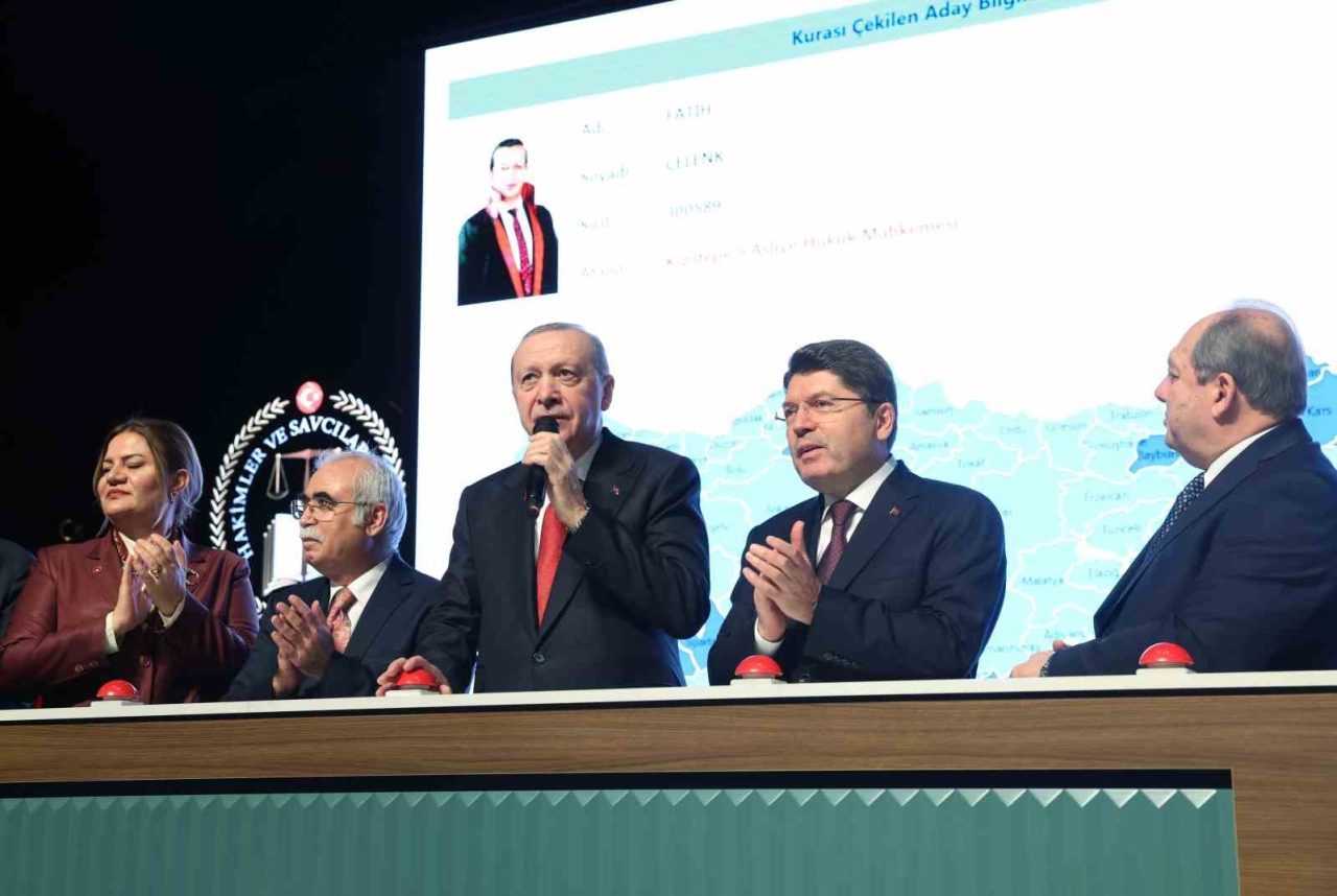 Cumhurbaşkanı Erdoğan, kura töreninin hayırlı olmasını dileyerek, “Eğitim ve staj dönemlerini başarıyla tamamlayarak bugün mesleklerine ilk adımı atmaya hazırlanan 712 Hâkim, 492 Cumhuriyet Savcısı, 147 İdari Hâkim kardeşimizi tebrik ediyor; adalet yolundaki mesailerinde kendilerine kolaylıklar, üstün muvaffakiyetler diliyorum. Onları bugünlere getiren ailelerine, hocalarına ve meslek büyüklerine emek ve çabaları için ayrıca teşekkür ediyorum” dedi.