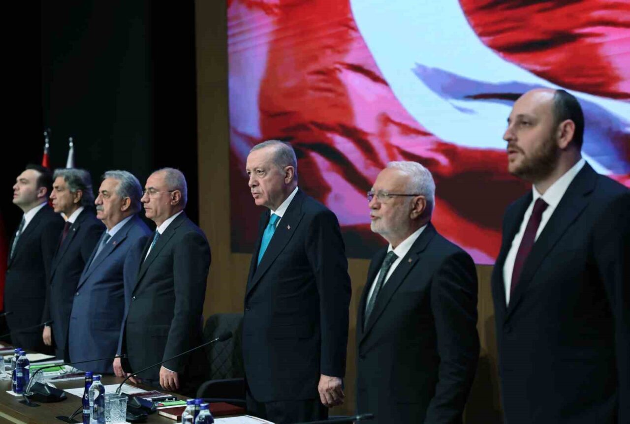AK Parti Genel Başkanı ve Cumhurbaşkanı Recep Tayyip Erdoğan, AK Parti Genişletilmiş İl Başkanları Toplantısı’nda konuştu. AK Parti olarak istişare geleneklerini istikrarlı bir şekilde sürdürdüklerini belirten Erdoğan, “Grup toplantılarımızla, Merkez Yürütme Kurulu ve Merkez Karar Yönetim Kurulu toplantılarımızla milletvekillerimizle bir araya geldiğimiz özel toplantılarla meselelerimizi değerlendiriyoruz. Ülkemizin ve dünyanın gündemindeki konuları Kabinemizde iki haftada bir düzenli olarak etraflıca ele alıyoruz. Aynı şekilde özel gündemli toplantılar aracılığıyla Türkiye’nin karşılaştığı tehdit ve tehlikelere çözüm yolları geliştiriyoruz” ifadelerini kullandı.