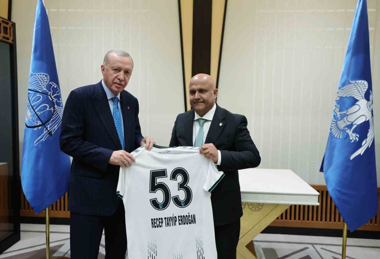 Erdoğan’a forma giydiği maçta çekilmiş fotoğraf takdim edildi