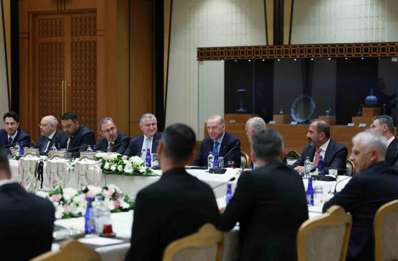 Kabulde konuşan Erdoğan, Süper Lig’e yükselen takımların temsilcilerini 2024-2025 sezonunda elde ettikleri başarıdan dolayı tebrik etti. Oldukça çekişmeli geçen bir spor takviminin sorunsuz, sıkıntısız bir şekilde geride bırakıldığını belirten Erdoğan, insanları ve taraftarları derinden yaralayacak, futbolun ruhuna ters düşecek olaylarla karşılaşılmadığını, gelecek sezonda da bu atmosferin iyileştirilerek devam ettirilmesi gerektiğini söyledi.