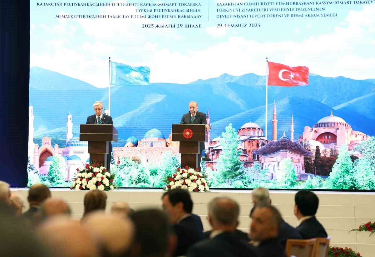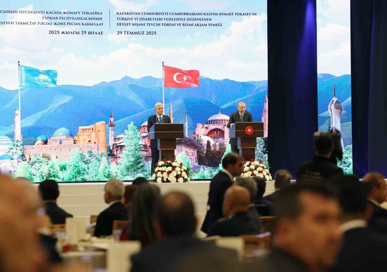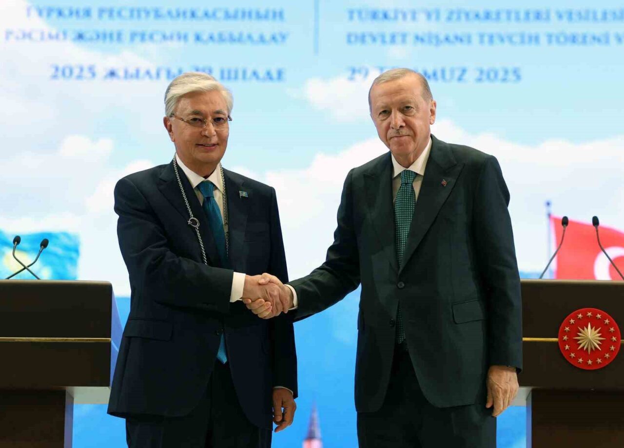 Cumhurbaşkanı Recep Erdoğan tarafından Kazakistan Cumhurbaşkanı Kasım Cömert Tokayev’e Devlet Nişanı tevcih edildi.