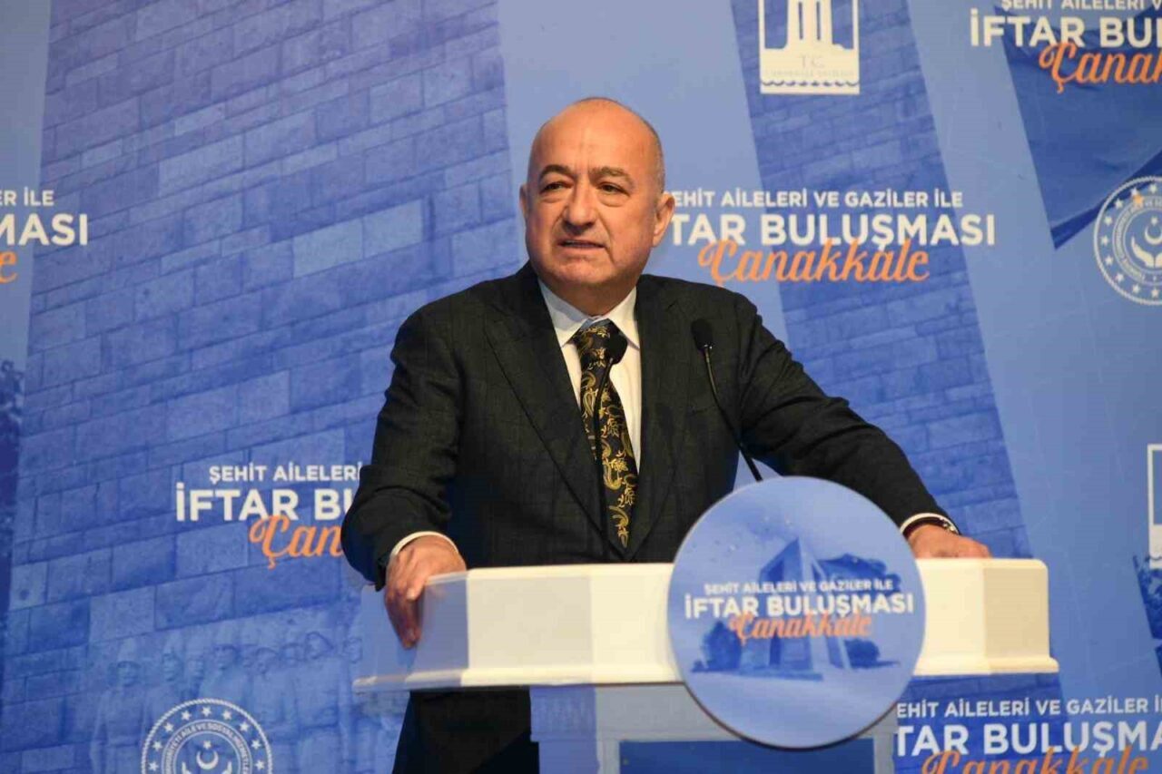 İftarda konuşan Cumhurbaşkanı Yardımcısı Cevdet Yılmaz, “Rahmet kapılarının ardına kadar açıldığı Ramazan-ı şerifinizi tebrik ediyor, bu mübarek aynın son iftarlarından birinde sizlerle aynı sofrayı paylaşmaktan büyük bir onur ve memnuniyet duyuyorum. 18 Mart Şehitleri Anma Günü vesilesiyle vatanımıza, bayrağımıza ve istikbalimize sahip çıkarken şehit düşen tüm kahramanlarımıza Allah’tan rahmet diliyorum. Şehit yakınlarımıza ve gazilerimize sıhhat ve afiyet temenni ediyorum. Şehitler diyarı Çanakkale’de, bu sabah icra edilen törende milletimizin istiklal uğruna ortaya koyduğu iradeyi bir kez daha hürmetle yâd ettik; vatan için toprağa düşen kahramanlarımızı rahmetle andık. Şimdi ise, bu vatanı bizlere emanet eden şehitlerimizin kıymetli aileleri ve gazilerimizle bir arada bulunmaktan onur duyuyorum. Çanakkale, bu milletin en zor şartlarda bile geri adım atmadığını, kaderini kendi iradesiyle şekillendirdiğini bütün açıklığıyla ortaya koyduğu bir dönüm noktasıdır. O gün cephede verilen mücadele, vatan söz konusu olduğunda nasıl bir birlik ve kararlılıkla hareket edildiğini gösteren güçlü bir hafızaya dönüşmüştür. Bugün şehitlerimizin hatırasında taşıdığımız emanet duygusu ve gazilerimizin onurlu duruşu, o gün ortaya konan iradenin hâlâ diri olduğunu göstermektedir. Ülkemizin güvenliği için görev yapan her bir evladımızın omuzlarında, Çanakkale’de ortaya konan o kararlılığın izleri vardır ve bu bağ, geçmiş ile bugün arasında kurduğumuz en sağlam sürekliliği ifade etmektedir. Böyle bir tarihî mirasın sorumluluğu ile içinde bulunduğumuz tabloya baktığımızda, dünya genelinde gerilimin arttığını ve bölgemizde daha kırılgan bir sürecin oluştuğunu görüyoruz” dedi.