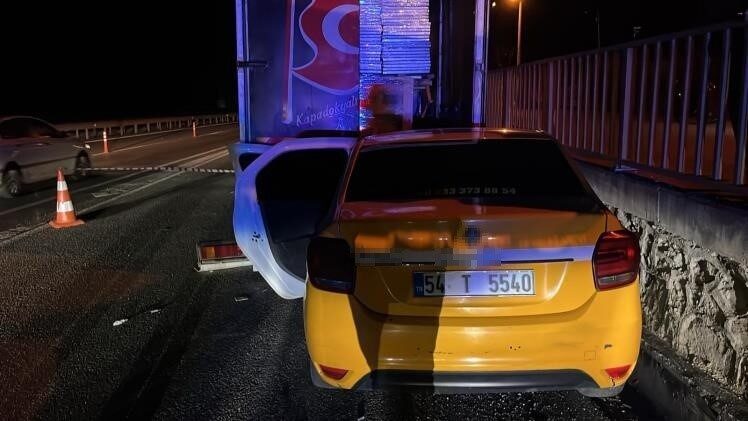 Sakarya’nın Pamukova ilçesi D-650 kara yolunda kamyonete adeta ok gibi saplanan ticari taksinin sürücüsü hayatını kaybetti, 1 kişi de yaralandı.