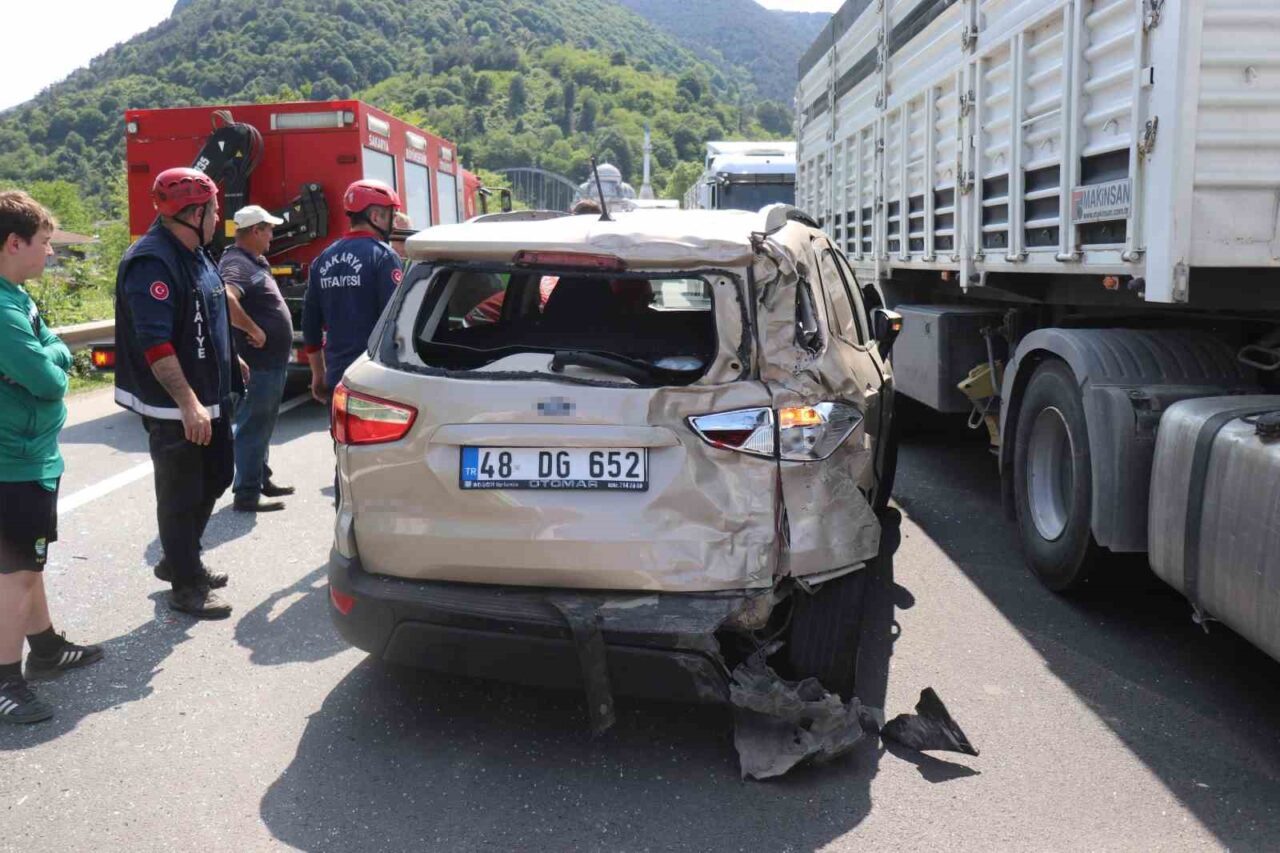 Kara yolunun Karaçam Mahallesi mevkii Sakarya istikametinde meydana gelen kazada, N.C. (54) idaresindeki 54 ACU 772 plakalı Özgüllü firmasına ait kamyonet, aynı yönde seyir halinde olan T.T. (38) idaresindeki 48 DG 652 plakalı SUV tarzı araca arkadan çarptı. Meydana gelen kazada iki araç sürücüsü de yaralandı. Durumun haber verilmesi üzerine bölgeye itfaiye, sağlık ve polis ekipleri sevk edildi. Adrese gelen itfaiye ekipleri kamyonet sürücüsünü sıkıştığı yerden çıkartarak sağlık ekiplerine teslim etti. Olay yerinde yapılan ilk müdahale sonrasında yaralılar hastaneye sevk edildi. Kaza sebebiyle kara yolunda uzun araç kuyrukları oluştu. Hususa ilişkin inceleme başlatıldı.