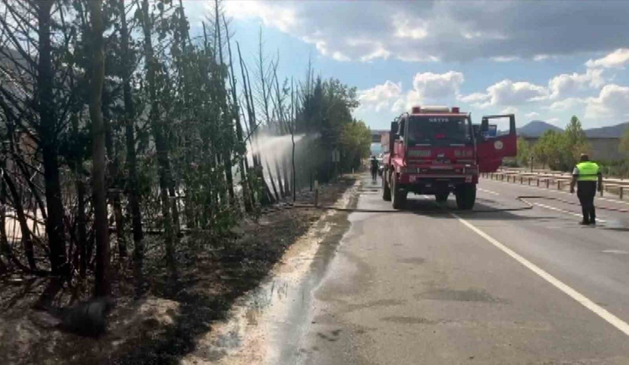 Sakarya’nın Pamukova ilçesi D-650 kara yolunun yanındaki ağaçlar alev topuna döndü. Geri dönüşüm tesisine yakın bir bölgede çıkan ve paniğe de sebep olan yangın ekiplerce kontrol altına alınarak söndürüldü. Alevlerin yükseldiği esnada yol geçici bir süre trafiğe kapatıldı.