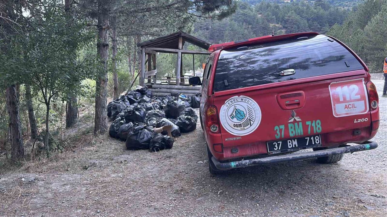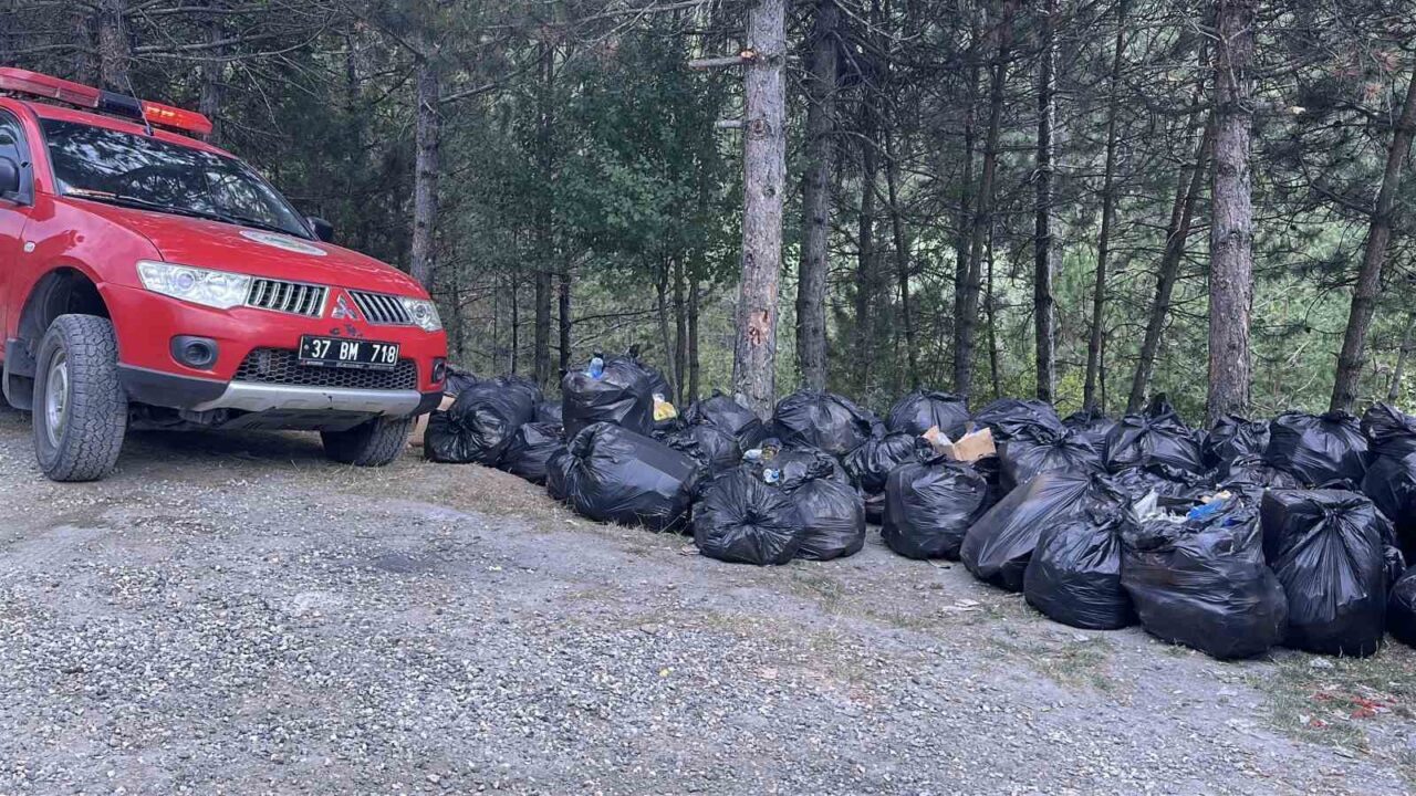 Kastamonu’nun Tosya ilçesinde D100 karayolunun yanındaki ormanlık alanda 200 torba çöp toplandı.
