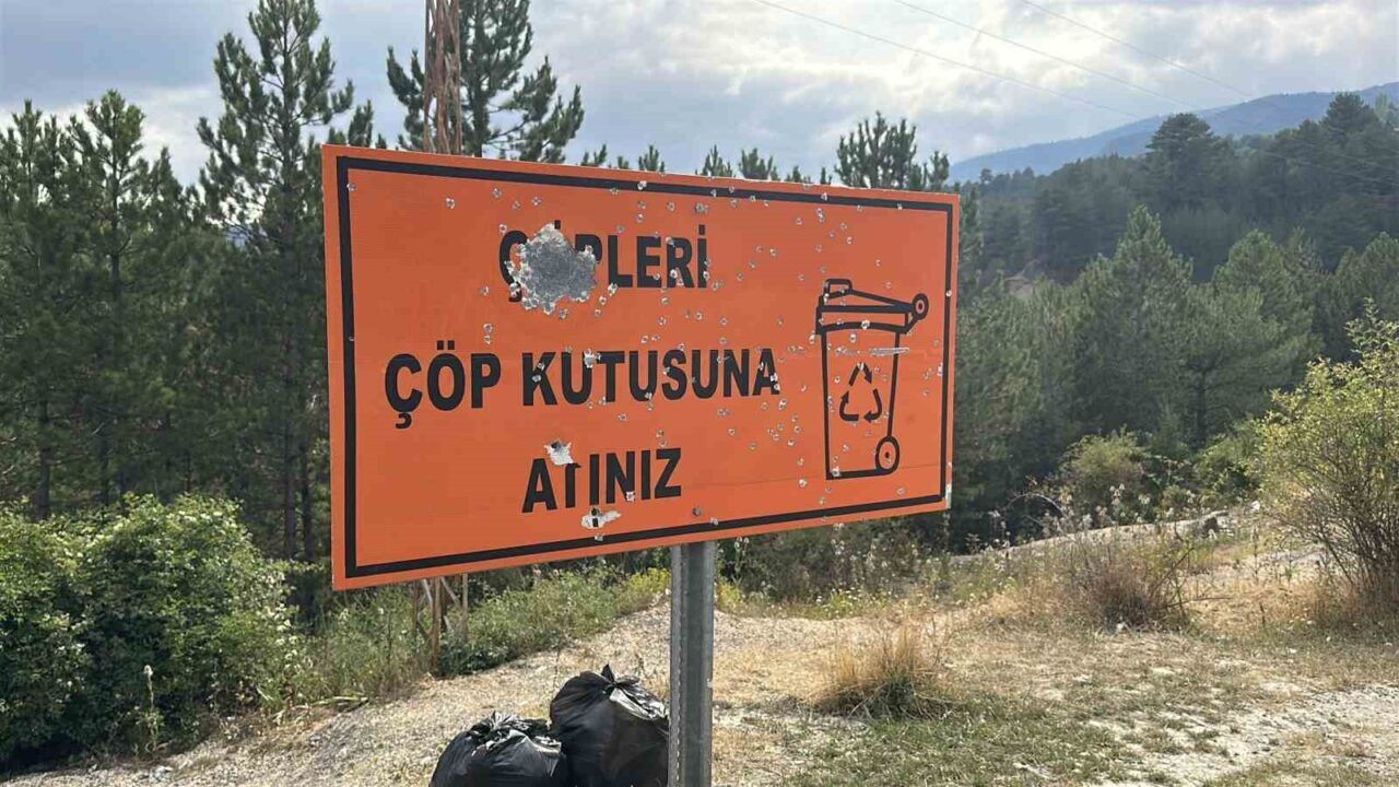 Temizlik çalışması sırasında, çevre duyarlılığını artırmak için yerleştirilen ve üzerinde “çöplerinizi çöp kutusuna atınız” yazan levhanın ise magandalar tarafından kurşunlandığı, bölgeye konulan çöp konteynerinin ise kimliği belirsiz kişiler tarafından çalındığı tespit edildi.