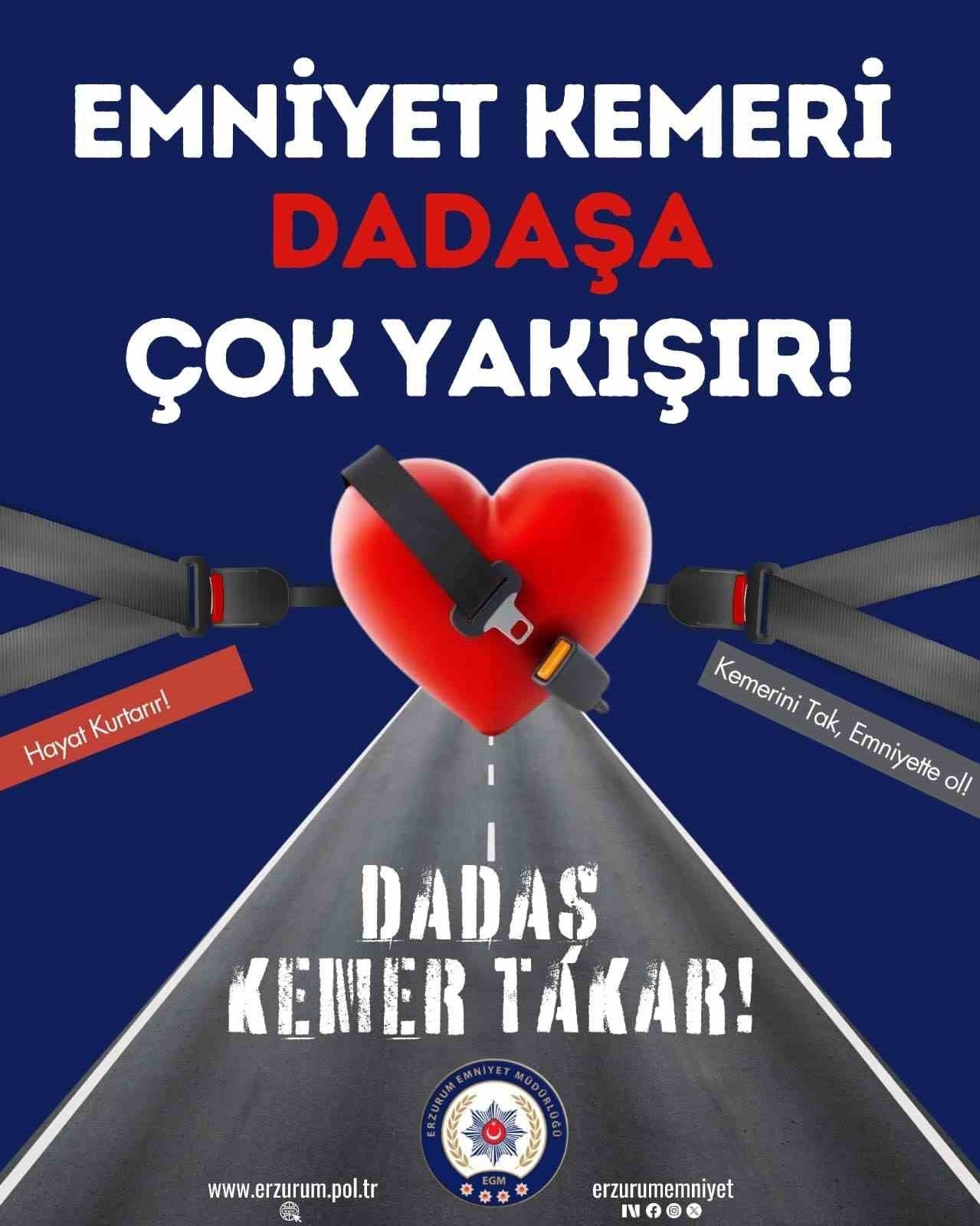 Erzurum Emniyet Müdürlüğü, trafikte kemer kullanımında farkındalık oluşturmak için “Dadaş Kemer Takar” sloganıyla çağrıda bulundu.