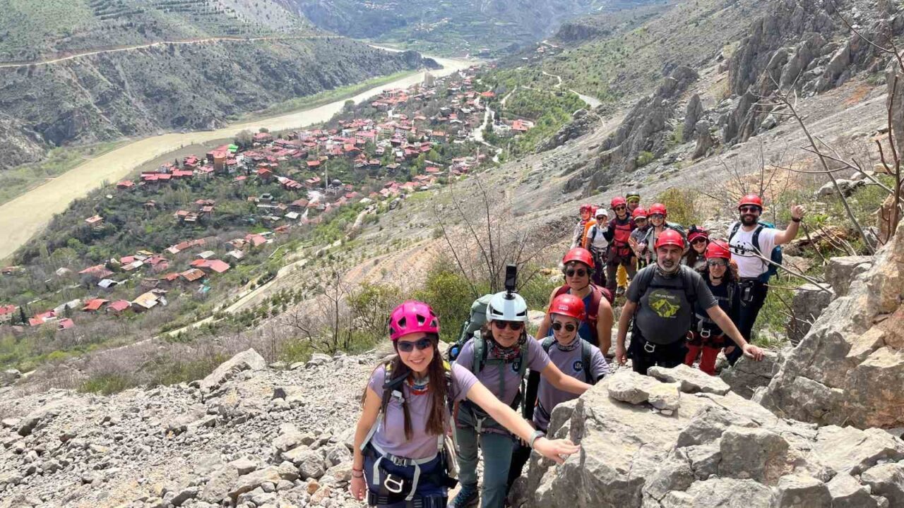 Türkiye’deki tek Via Ferrata parkuruna sahip olan Kemaliye’deki 517 basamaktan oluşan ve 350 metre irtifa kazanılan parkur, 15 sporcu tarafından tırmanıldı.