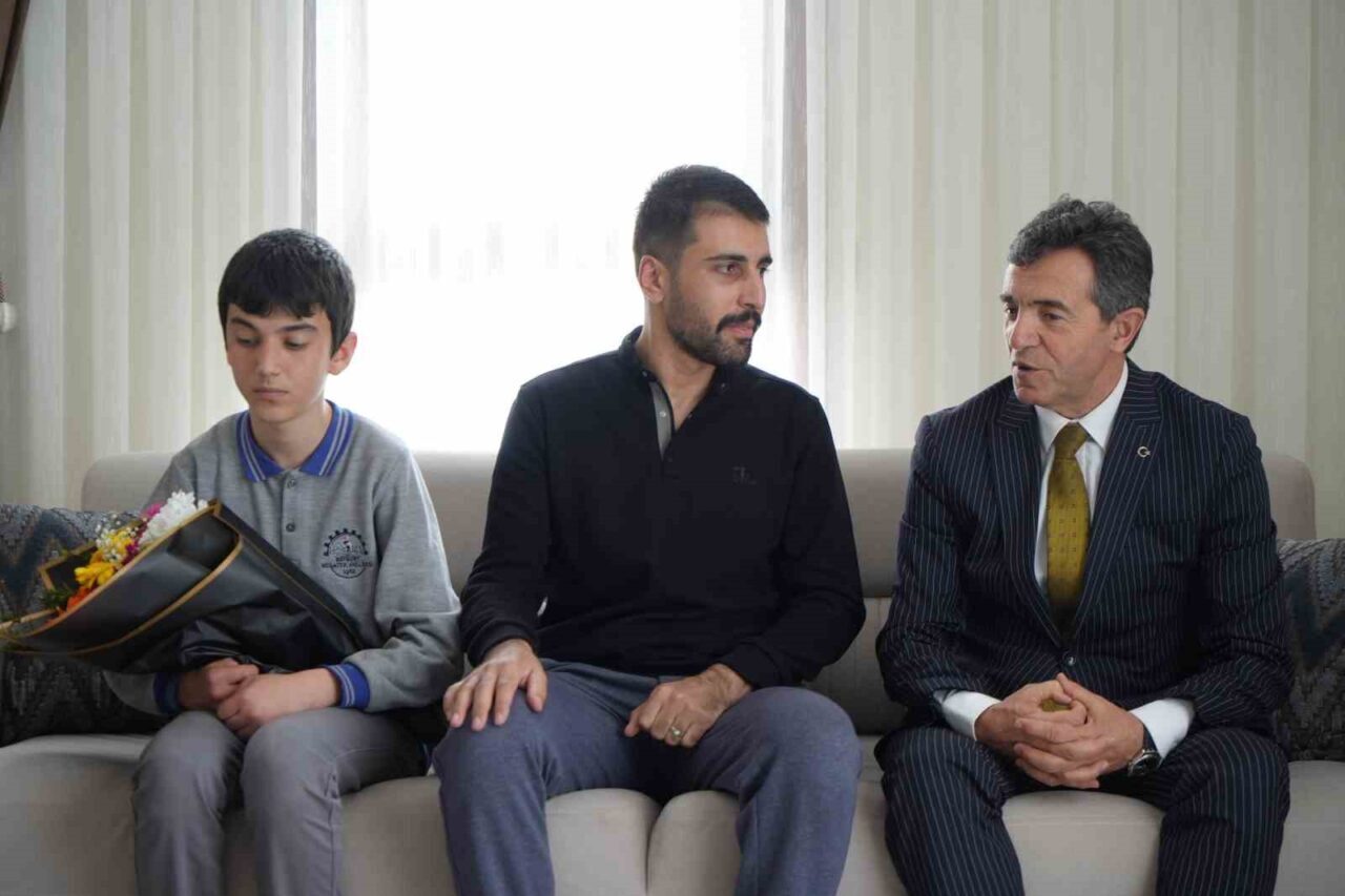 Müdür Yardımcısı Arif Köprücü ise, “29 Ağustos 2025 tarihinde hain terör saldırısında yaralanan kıymetli hemşehrimiz, komiserimiz Akşemsettin Temel’i bugün ziyarete geldik. Öğrencilerimizle birlikte kendisine geçmiş olsun dedik ve Polis Haftası’nı kutladık” ifadelerini kullandı.