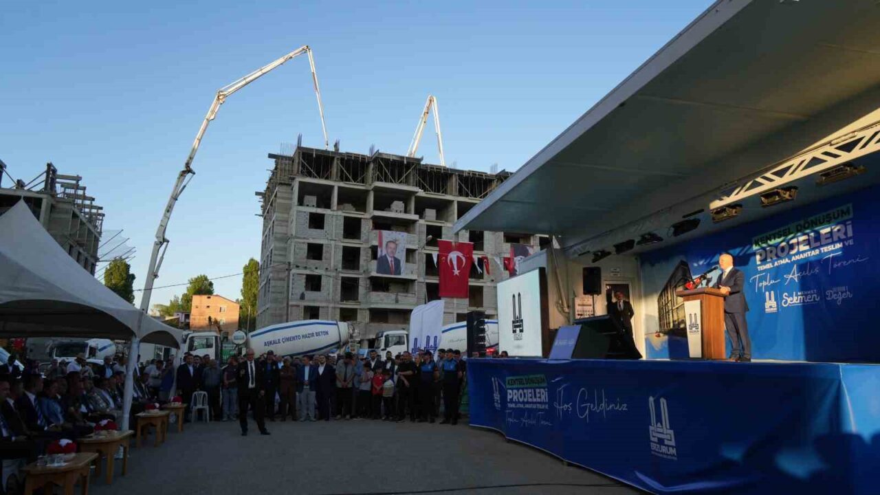 Erzurum’da düzenlenen kentsel dönüşüm programına AK Parti Erzurum Milletvekili Mehmet Emin Öz, Erzurum Vali Yardımcısı Mehmet Faruk Kazdal, AK Parti İl Başkanı İbrahim Küçükoğlu, MHP İl Başkanı Adem Yurdagül, ilçe belediye başkanları ve davetliler katıldı. Veyisefendi ve Muratpaşa mahalleleri ile birlikte toplam 592 konut, 85 ofis ve 64 iş yerinin temelini atılırken, Çırçır, Vaniefendi ve Alipaşa Konutları olmak üzere toplam 232 konutun anahtar teslimi yapıldı.