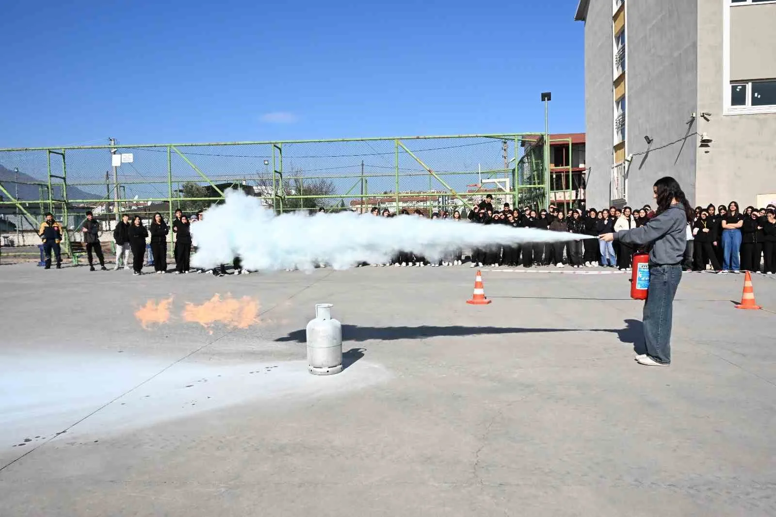 407 kişinin okulu tahliye etmesi 44 saniye sürerken, senaryo gereği yaralanan bir öğrenci ise ekipler tarafından tahliye edildi. Okul bahçesinde ilk müdahale işlemini ve ambulansla sevk senaryosu öğrencilere gösterildi. Tatbikatın ardından itfaiye ekipleri tarafından yangınlara karşı önlem ve yangına ilk müdahale eğitimi verildi. Yanan bir tüpün öğrenciler tarafından söndürülme eğitiminin ardından tatbikat tamamlandı.