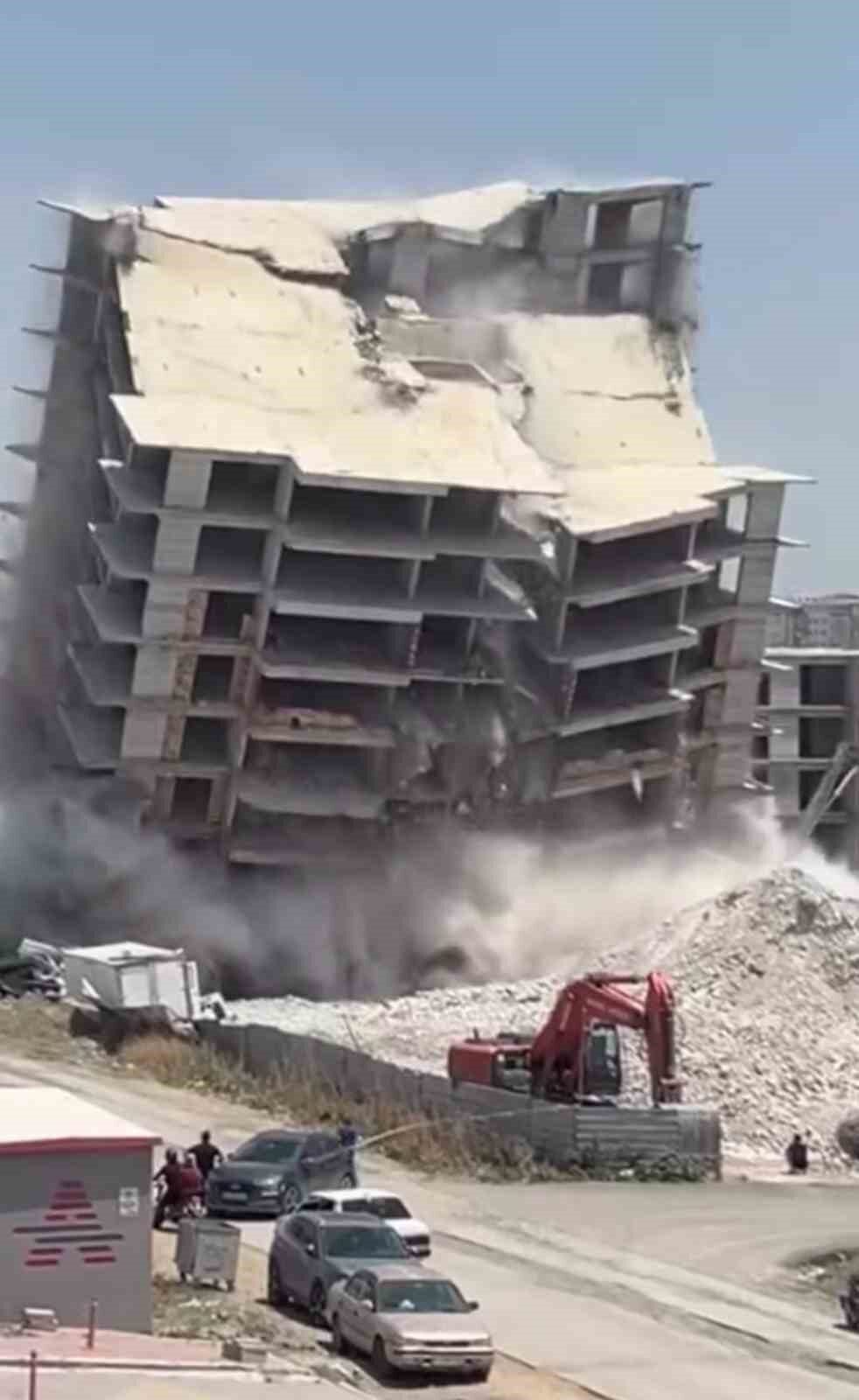 ANTAKYA İLÇESİNDE 12 KATLI BİNANIN İŞ MAKİNESİNİN DARBESİYLE YIKIMI VATANDAŞLARA DEPREM ETKİSİ YAŞATTI.