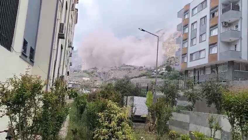 HATAY’IN İSKENDERUN İLÇESİNDE KENT MERKEZİNE YAKIN BİR NOKTADA BULUNAN TAŞ OCAĞINDA GERÇEKLEŞTİRİLEN PATLAMAYLA TOZ BULUTU HAKİM OLDU. PATLAMANIN ETKİSİYLE DEPREM OLDUĞUNU DÜŞÜNEN VATANDAŞLAR SOKAĞA DÖKÜLDÜ.