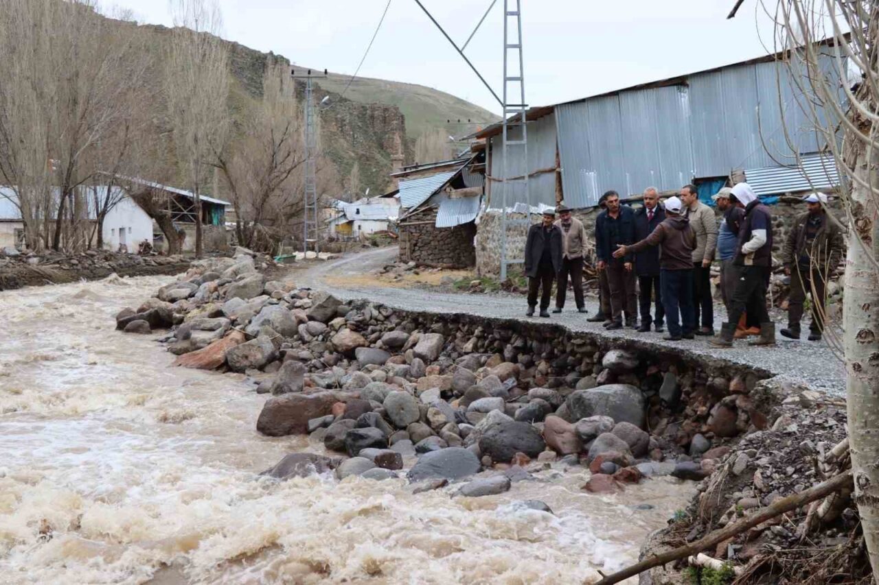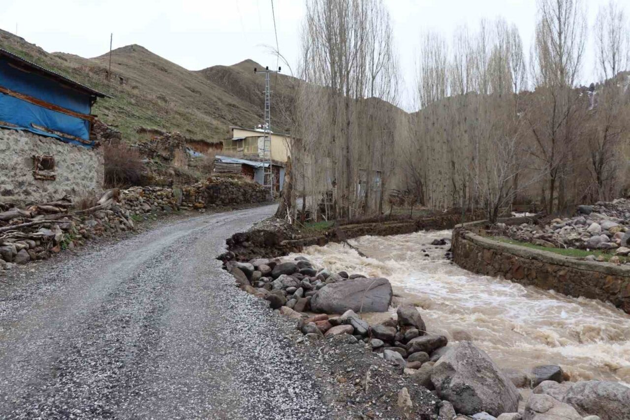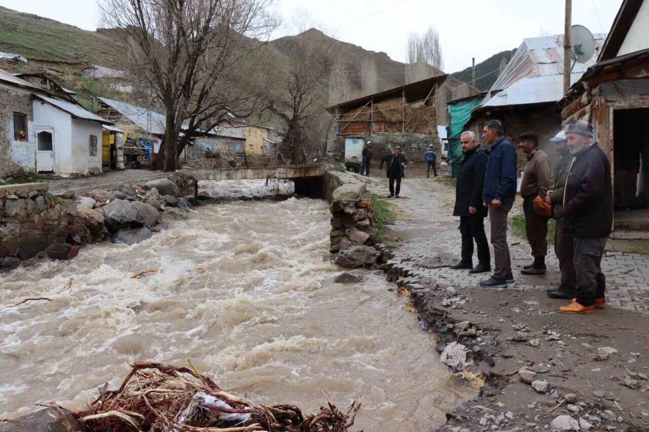 Erzurum’un Oltu ilçesinde etkili olan sağanak yağış ve eriyen kar suları nedeniyle Dümbüllü Deresi taştı.
