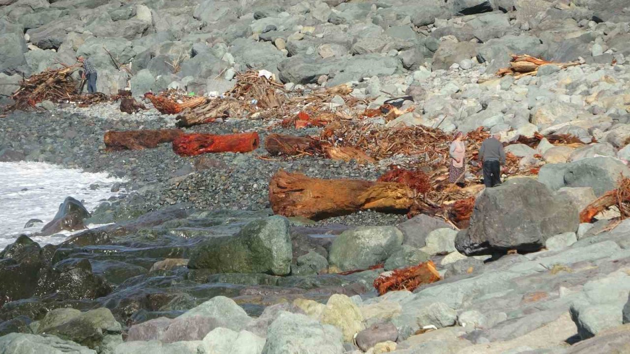 Rize’de hafta sonu yaşanan şiddetli yağışlar sonrasında derelerin Karadeniz’e taşıdığı odunlar Rizeliler’in kışlık yakacağı oldu.