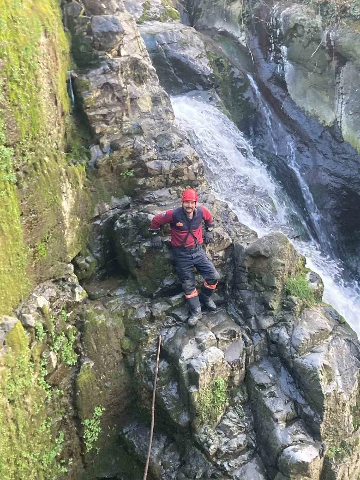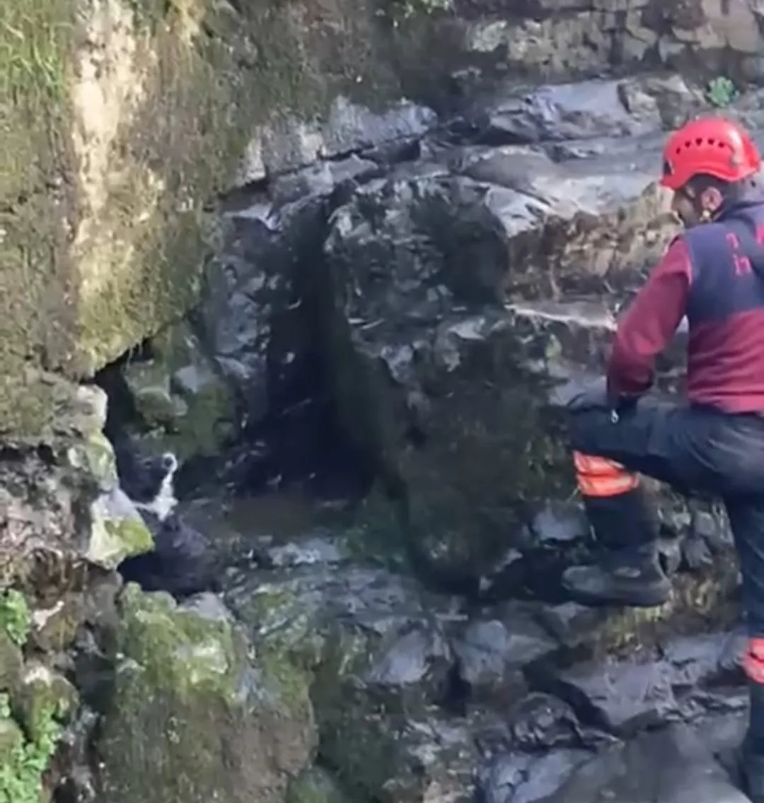 TRABZON’DA DEREYE DÜŞEN VE ORADA MAHSUR KALAN BİR KÖPEĞİ İTFAİYE PERSONELİ KURTARDI.
