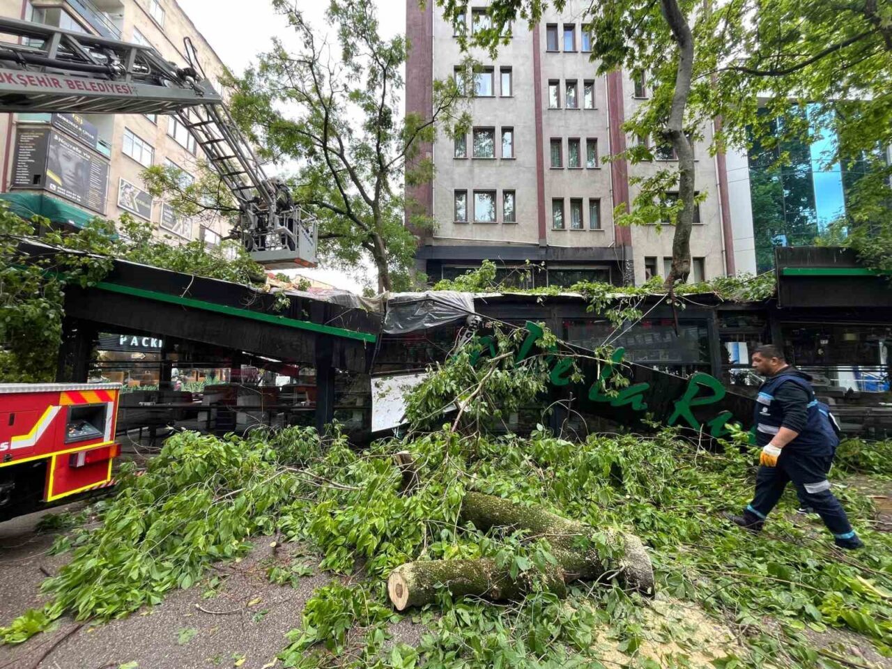Olay saat 11.00 sıralarında meydana geldi. Aniden bastıran sağanak yağmur ve kuvvetli rüzgar, kent genelinde birçok noktada etkili oldu. Yürüyüş Yolu Caddesi üzerinde bulunan yaklaşık 150 yıllık çınar ağacı, rüzgarın şiddetiyle bir işletmenin tente kısmına devrildi. Olay anında içeride bulunan iki kişi yaralandı. İhbar üzerine olay yerine itfaiye, polis ve sağlık ekipleri sevk edildi. Yaralıların hayati tehlikesinin bulunmadığı öğrenildi.
