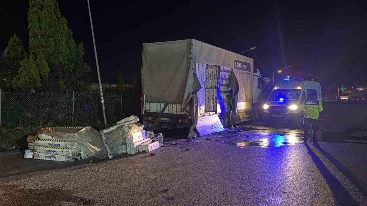 Anadolu Otoyolu Sakarya geçişinde dinlenme tesisinde park halinde bulunan duvar kağıdı yüklü kamyonun kasasında çıkan yangın itfaiye ekiplerince söndürüldü.