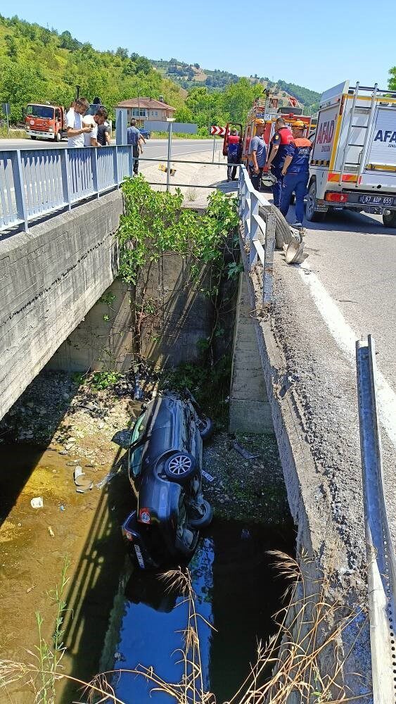 ZONGULDAK-ANKARA KARA YOLUNUN ÇAYKÖY İLE ECELER KÖYÜ MEVKİİNDE MEYDANA GELEN KAZADA BİR OTOMOBİL DİREKSİYON HAKİMİYETİNİ KAYBETMESİ SONUCU İKİ KÖPRÜ ARASINDAN DEREYE UÇTU. KAZADA 1 KİŞİ YARALANDI.