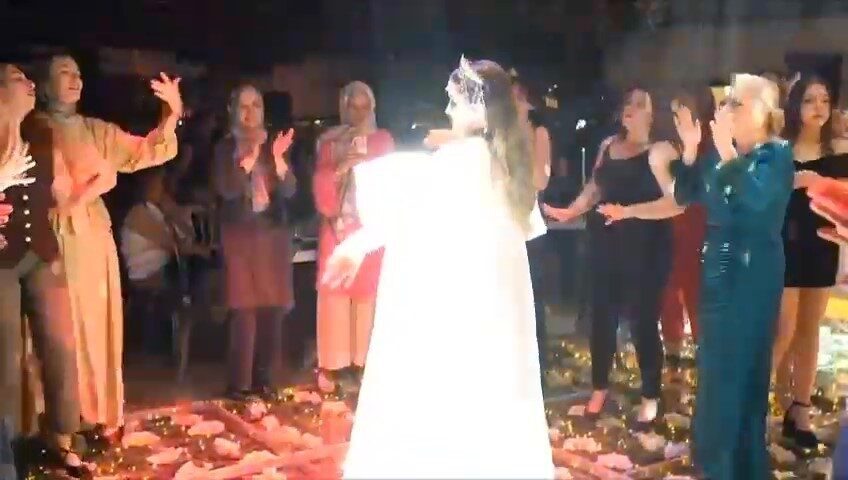 Olaya ilişkin görüntü ortaya çıktı. Görüntülerde gelinin dans ettiği anda disko topunun gelinin üstüne düştüğü görülüyor.