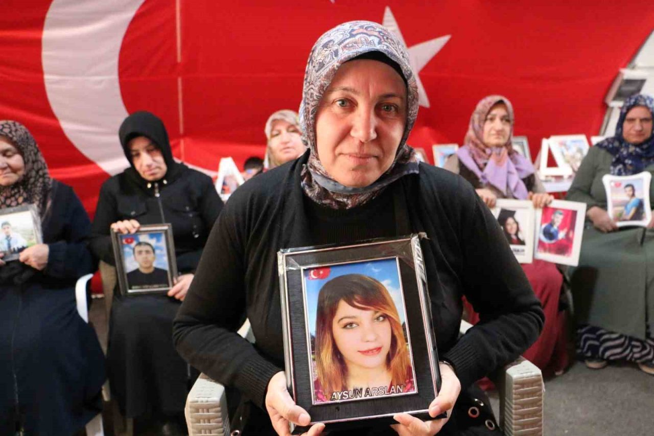 Aysun Arslan’ın annesi Aydan Arslan, Cumhurbaşkanı Erdoğan ve Devlet Bahçeli’ye süreci başlattığı için teşekkür ederek, “Artık biz de diyoruz anneler ağlamasın, askerlerimiz, polislerimiz ölmesin. Artık kan dökülmesin, barış olsun. Biz de bu barışa destek veriyoruz, sonuna kadar da destekliyoruz. Artık evlatlarımız gelsinler, bu hasret bitsin diyoruz. Evlatlarımıza kavuşalım, artık hiçbir anne ağlamasın” şeklinde konuştu.