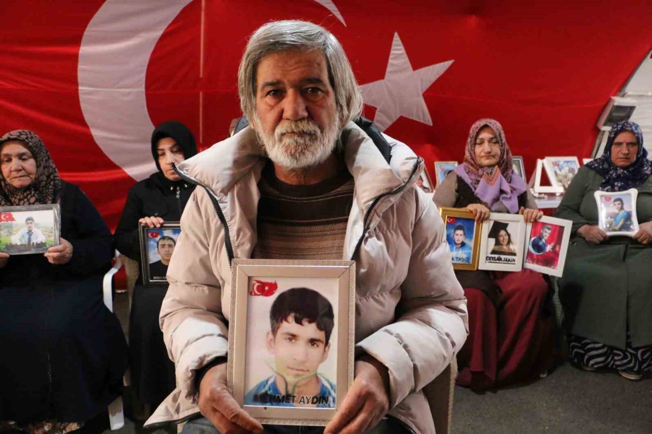 Terör örgütü PKK tarafından kaçırılan çocuklarına kavuşmak isteyen ailelerin 3 Eylül 2019’da eski HDP İl Başkanlığı binası önünde başlattığı oturma eylemi aralıksız devam ediyor. Aileler İmralı’ya temsilci göndermeyen CHP’ye seslenerek Terörsüz Türkiye sürecine destek olması gerektiğini aktardı. Mehmet Aydın’ın babası Nihat Aydın, 7 yıldır evlat nöbeti tuttuklarını söyledi. Aydın, “Allah razı olsun Cumhurbaşkanımız ve Devlet Bahçeli ellerini taşın altına koydular. ’Terörsüz Türkiye’ sürecini başlattılar. Bundan çok umutluyuz. İnşallah sonuna kadar gidecekler ve bu işi bitirecekler. Barış sağlanacaktır. Özellikle CHP’nin neden heyete girmediğini biz anlamlandıramadık. Eğer sen bugün ülkenin birlik beraberliği için elini taşın altına koymuyorsan hangi gün bu ülkeye sahip çıkacaksın. Hangi gün ‘Bu ülkenin partisiyim’ diyebileceksin. Bu arada özellikle şehit ve gazi ailelerinin ellerinden öperiz. Biz de terör mağduruyuz. Bugün evlatlarımızın sağ ya da ölü olduğunu bilmiyoruz. Buna rağmen biz bu süreci destekliyoruz. Diyoruz ki ‘Bari bundan sonra kimse ölmesin’. Askerimiz, polislerimiz şehit olmasın. Bizim çocuklarımız başkasının maşası, oyuncağı olmasın diye sonuna kadar süreci destekliyoruz ve sonuna kadar da Cumhurbaşkanımız ile Devlet Bahçeli’nin yanındayız” dedi.