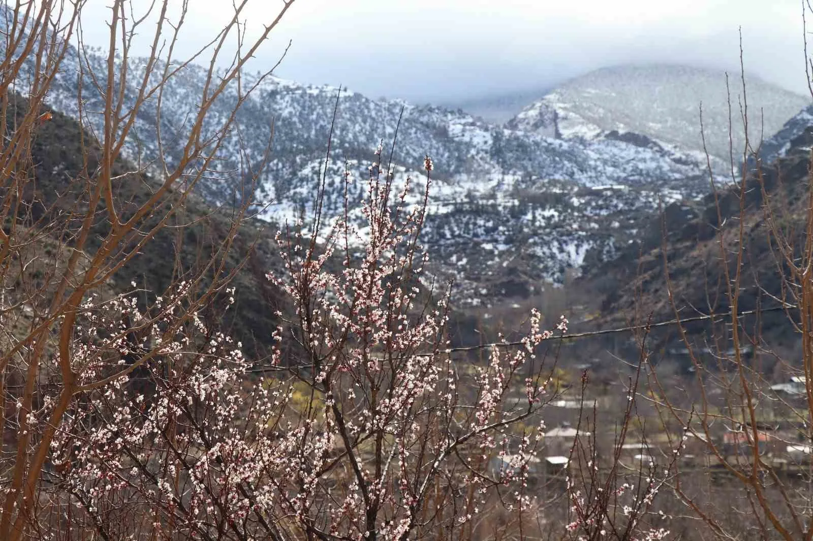 Doğu Anadolu Bölgesi’ni etkisi altına alan yoğun kar yağışı, Ormanağzı Mahallesi’nde meyve ağaçlarının çiçeklerini olumsuz etkiledi.