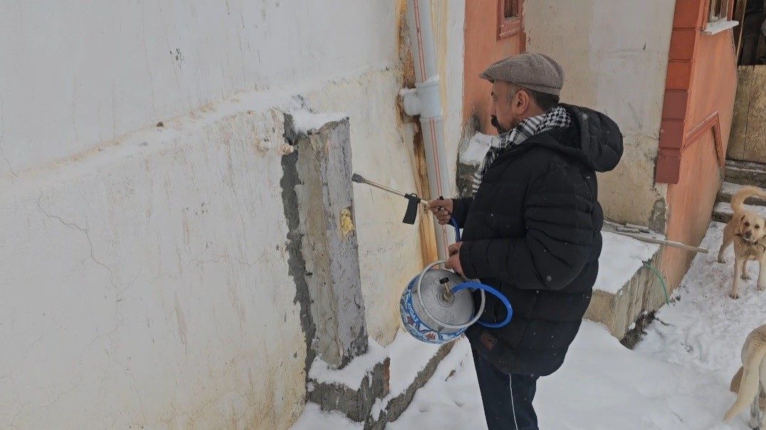 Soğuk havanın etkili olduğu kırsal kesimlerde ise vatandaşlar hayvanlarını beslemekte güçlük çekti. Erzincan’ın Refahiye ilçesine bağlı Kamberağa köyünde yaşayan Baki Kaya, büyükbaş hayvanlarına su temin ettiği şebekenin donması üzerine pürmüzle ısıtarak açmaya çalıştı.