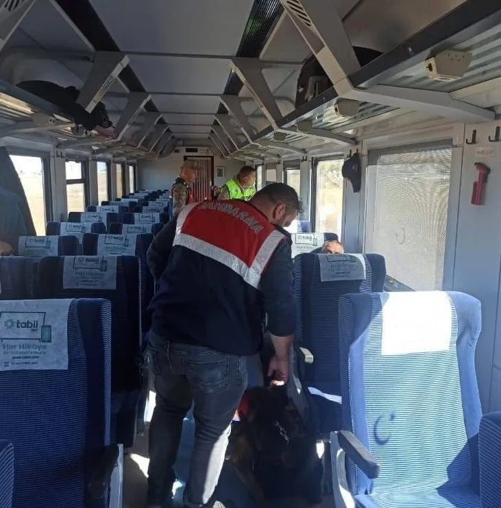Erzurum jandarma ekipleri Doğu Ekspresi seferlerinde huzur ve güvenlik için zaman zaman tren içinde önleyici tedbirler kapsamında kontroller yapıyor.