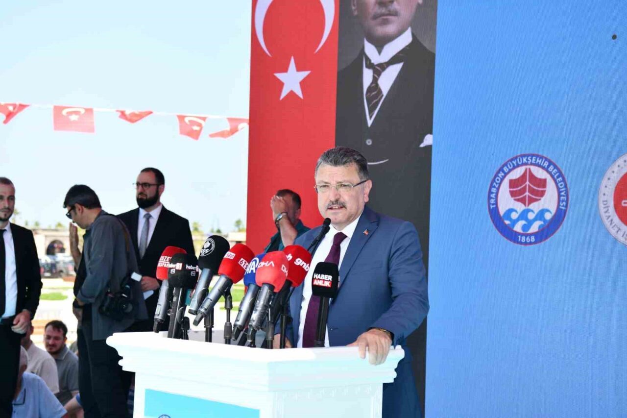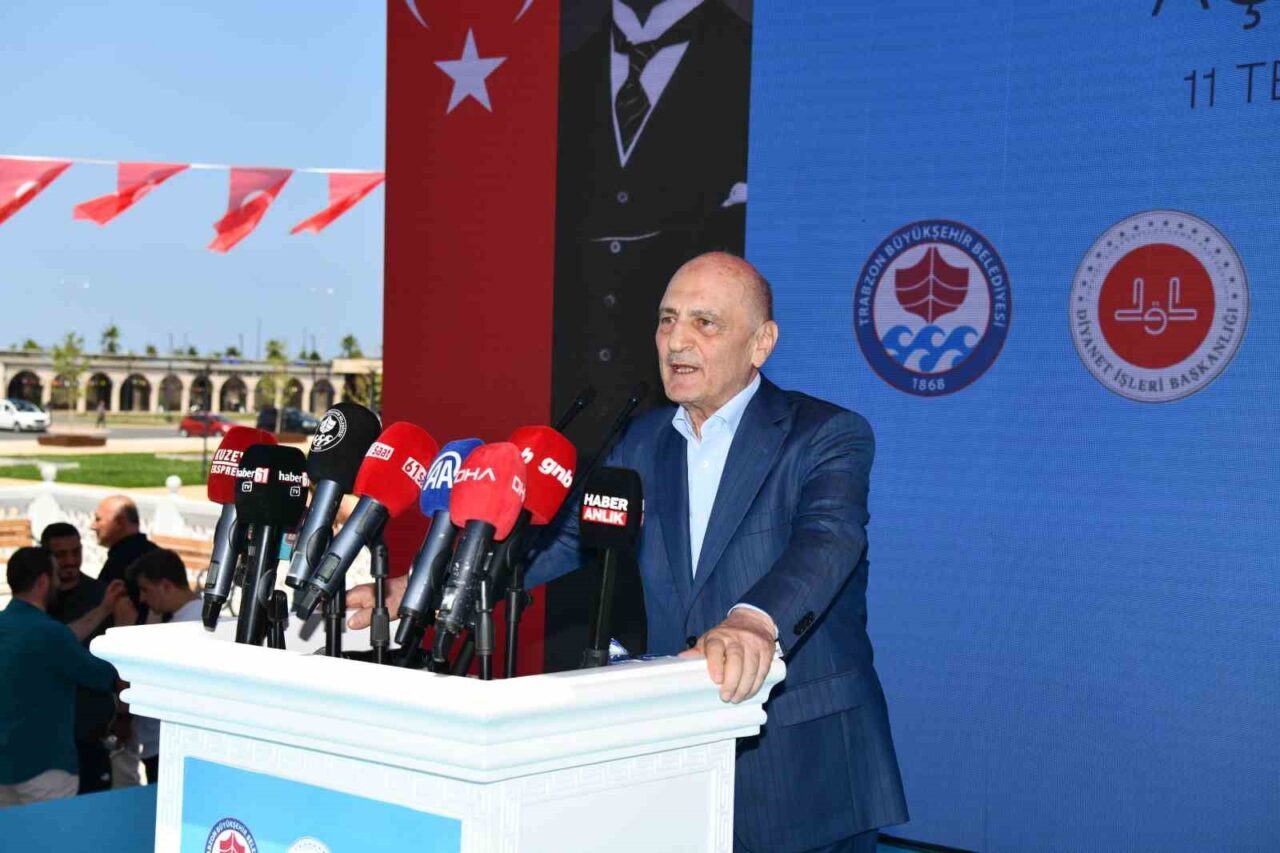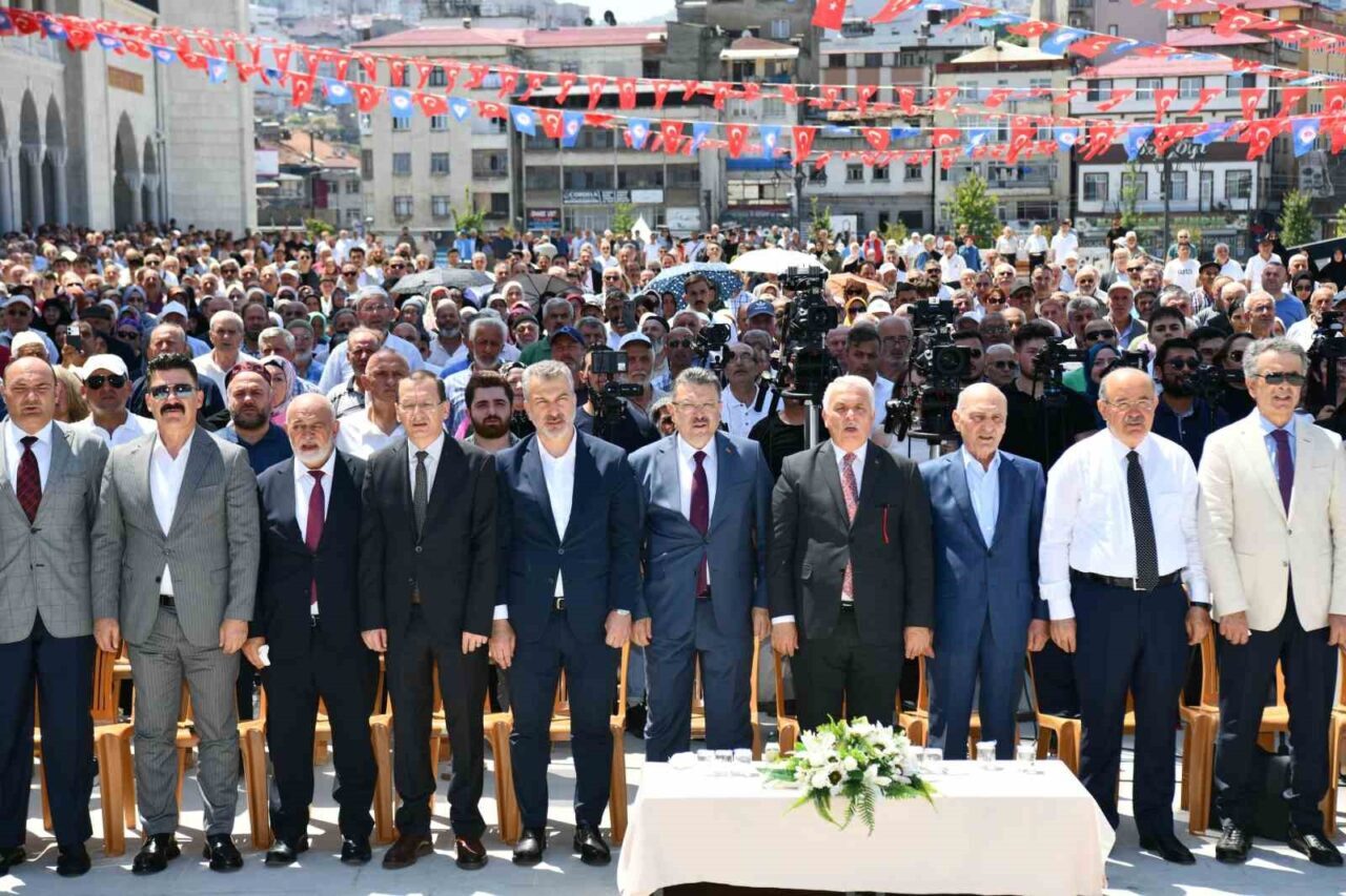 Trabzon Büyükşehir Belediyesi tarafından tahsis edilen arazi üzerine yapılan caminin açılış programına Vali Aziz Yıldırım, Büyükşehir Belediye Başkanı Ahmet Metin Genç, eski Çevre ve Şehircilik Bakanı Erdoğan Bayraktar, Diyanet İşleri Başkanlığı Din Hizmetleri Müdürü Şaban Kondi, İl Müftüsü Selami Aydın, ilçe belediye başkanları, kamu kurum müdürleri, siyasi parti ile sivil toplum kuruluşlarının temsilcileri ve çok sayıda vatandaş katıldı. Büyükşehir Belediyesi Mehter takımının gösterisi ve caminin yapımıyla ilgili tanıtım videosuyla başlayan törende konuşan eski Çevre ve Şehircilik Bakanı Erdoğan Bayraktar ise, Trabzon halkının bu camiyi sahiplendiğini kaydederek, “Bu cami Trabzon’a çok yakıştı. Bu kadim vilayet önemli bir şehirdir. 12. asırdan itibaren Selçuklu Türklerinin Anadolu topraklarında İslam’ı yaygınlaştırma gayretleriyle doğu Karadeniz’de filizlenen İslamiyet nihayet 1461 yılında Fatih Sultan Mehmet hanın Trabzon’u fethetmesiyle bölge tam anlamıyla bir İslam beldesi olmuştur. 2019 yılından itibaren inşaatına devam ettik. Bu eserde emeği geçen herkese teşekkür ediyorum. Caminin yapılması fikrini ortaya koyan ve sahip çıkan önceki dönem Büyükşehir Belediye Başkanımız Orhan Fevzi Gümrükçüoğlu’na, Ortahisar Belediye Başkanlığı’nda ve Büyükşehir Belediye Başkanlığı’nda vermiş olduğu destekleri için Ahmet Metin Genç’e teşekkür ediyorum. Camiler sadece ibadetlerimizi yapmak için bir araya geldiğimiz yer değildir, tüm medeniyetlerin merkezinde cami vardır. Camimiz aynı anda 7 bin 700 kişinin ibadet yapabileceği bir alana sahiptir. Bu cami ve külliye simge niteliği kazanacaktır. Trabzon bizim sevdamızdır. Trabzon vatanına, bayrağına ve milletine bağlı birçok kişinin yetiştiği şehirdir. Trabzon’un cazibe merkezi olma özelliğini artırmalıyız. Eğitim, üretim, sanayi ve turizmin artması için elimizden geleni yapmalıyız” diye konuştu.