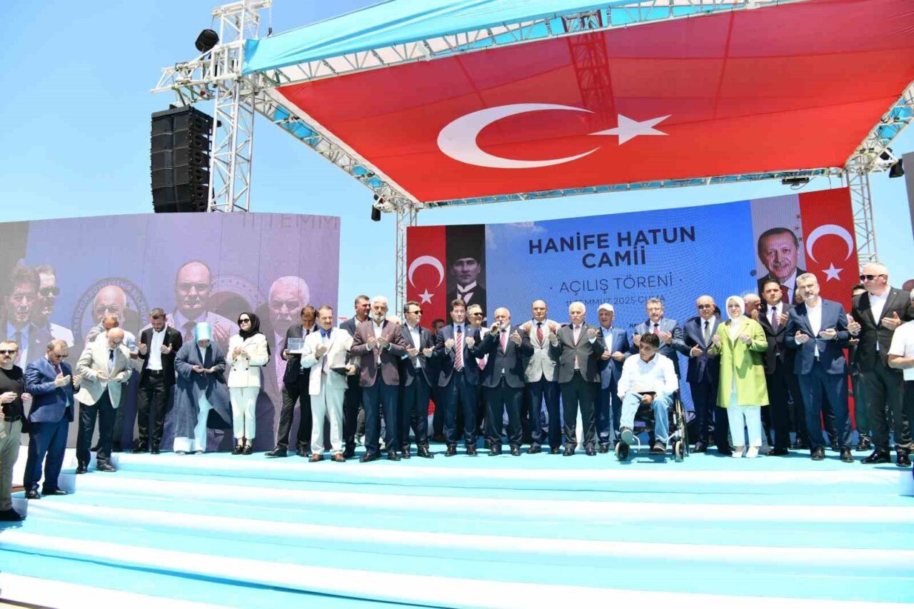 Trabzon’un Ortahisar ilçesi Pazarkapı mevkiinde inşa edilen ve Doğu Karadeniz Bölgesi’nin en büyük camisi olma özelliğini taşıyan Hanife Hatun Camii, düzenlenen görkemli bir törenle ibadete açıldı.