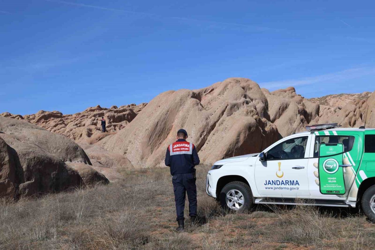 Edinilen bilgilere göre olay, merkeze bağlı Eğribucak köyü sınırları içerisindeki jeoparkta yaşandı. Kent merkezine 23 kilometre uzaklıkta bulunan ve ilginç yapısıyla dikkatleri üzerine toplayan Eğribucak Kayalıkları’ndan silah sesleri yükseldi. Durumu fark eden köylüler, köy muhtarı Fatih Durna’ya haber verdi. Araziye çıkarak avcıları görüntüleyen muhtar, durumu Acil Çağrı Merkezi’ne bildirdi. Kızıl rengi ve kayalık yapısı ile Mars gezegenine benzetilen ve ‘Dünyadaki Mars’ olarak da anılan kayalıklarda avlanan kaçak avcılara jandarma ve Doğa Koruma ve Milli Parklar ekiplerince işlem yapıldı.