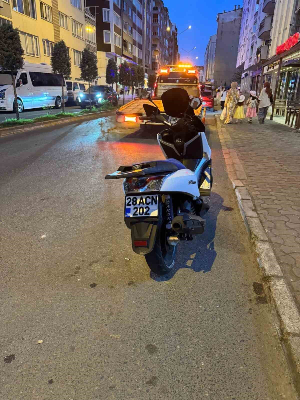 Giresun’da dur ihtarına uymayan motosiklet sürücüsü, aracını bırakarak yaya olarak kaçtı. Polis ekipleri motoru çekiciyle otoparka çektirdi.