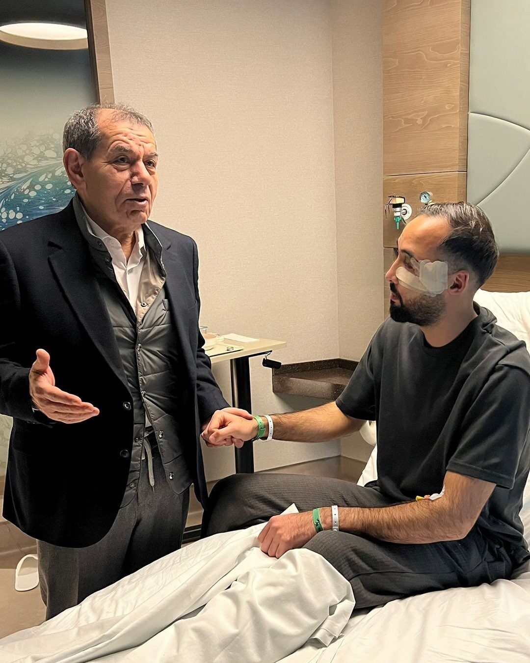 Galatasaray Başkanı Dursun Özbek, İstanbulspor Başkanı Ecmel Faik Sarıalioğlu birlikte İsa Doğan’ı hastanede ziyaret etti.