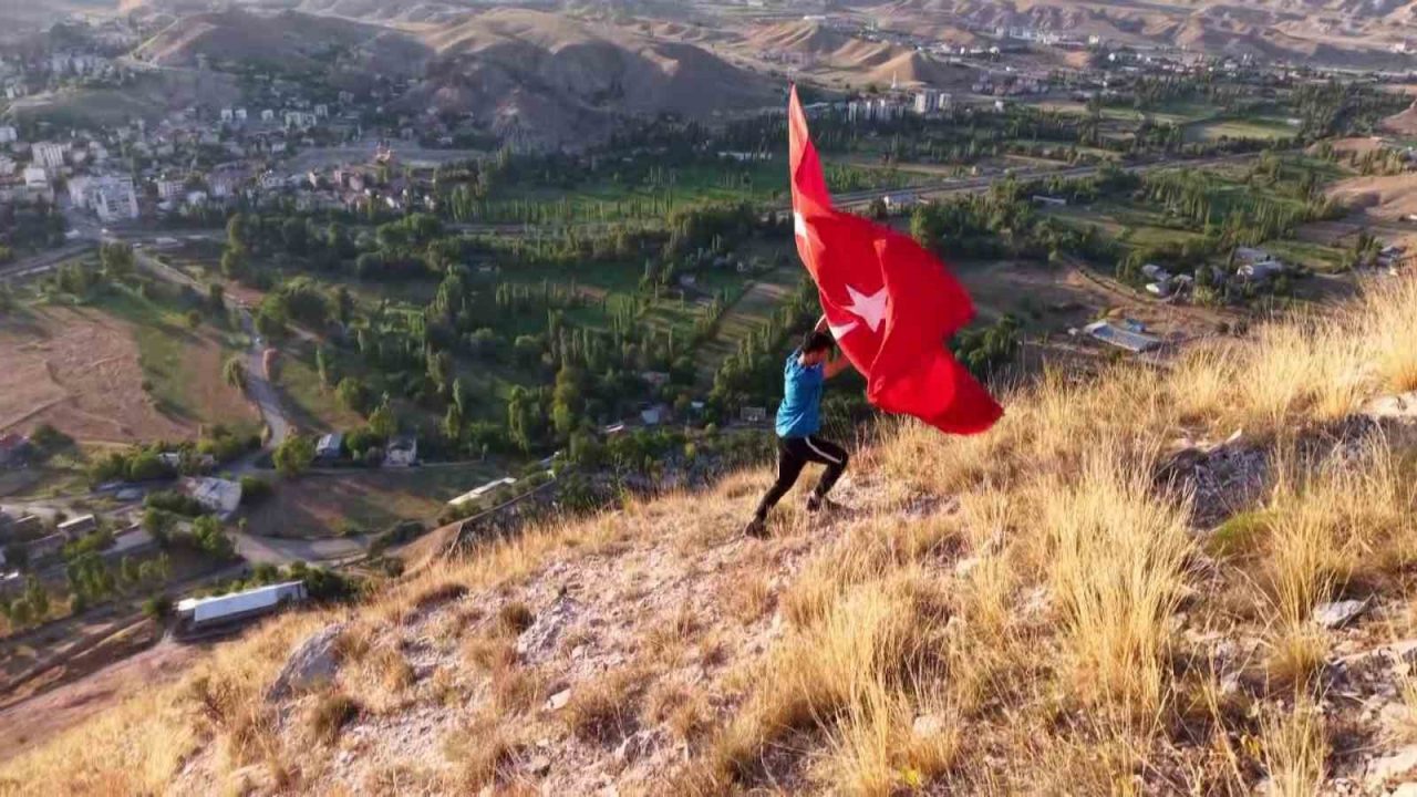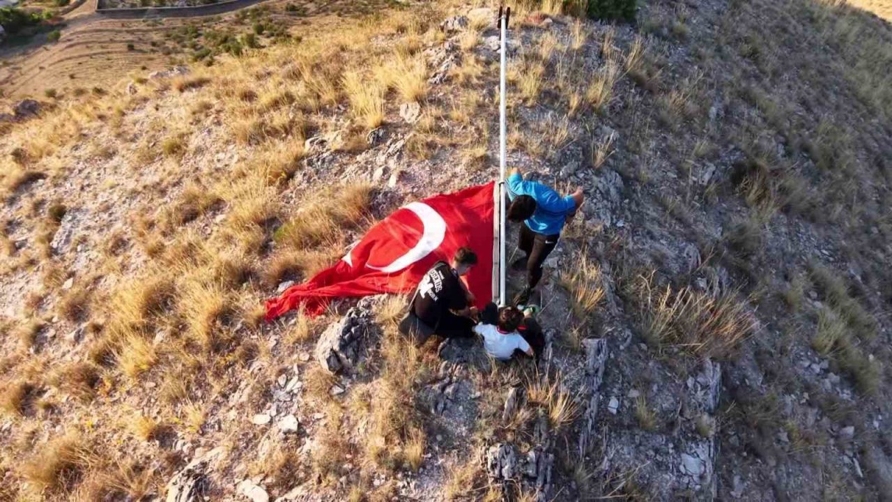 Erzurum’un Oltu ilçesine yaşadıkları farklı illerden memleketlerinden gelen bayrak sevdalısı gençler, her yıl 1500 rakımlı Sitare Dağı’na tırmanarak yıpranan Türk bayrağını değiştiriyor.
