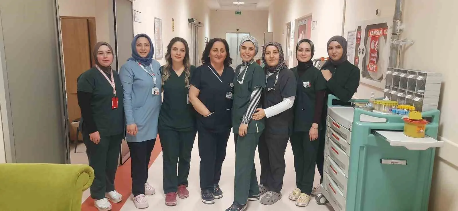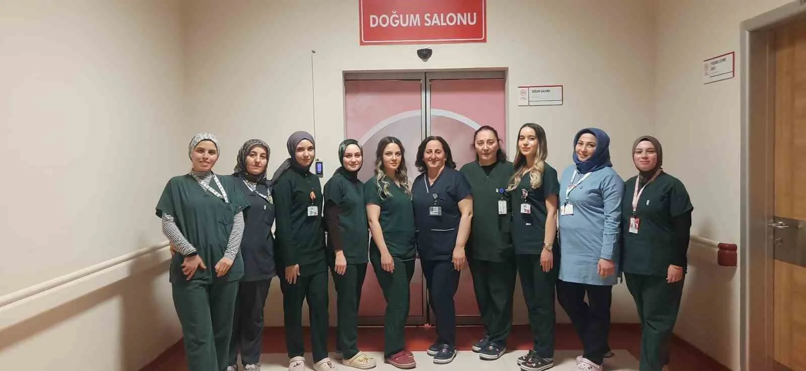 SAMSUN VEZİRKÖPRÜ DEVLET HASTANESİ’NDE GÖREV YAPAN 55 YAŞINDAKİ EBE SEVAL PEKER, MESAİ ARKADAŞLARI.