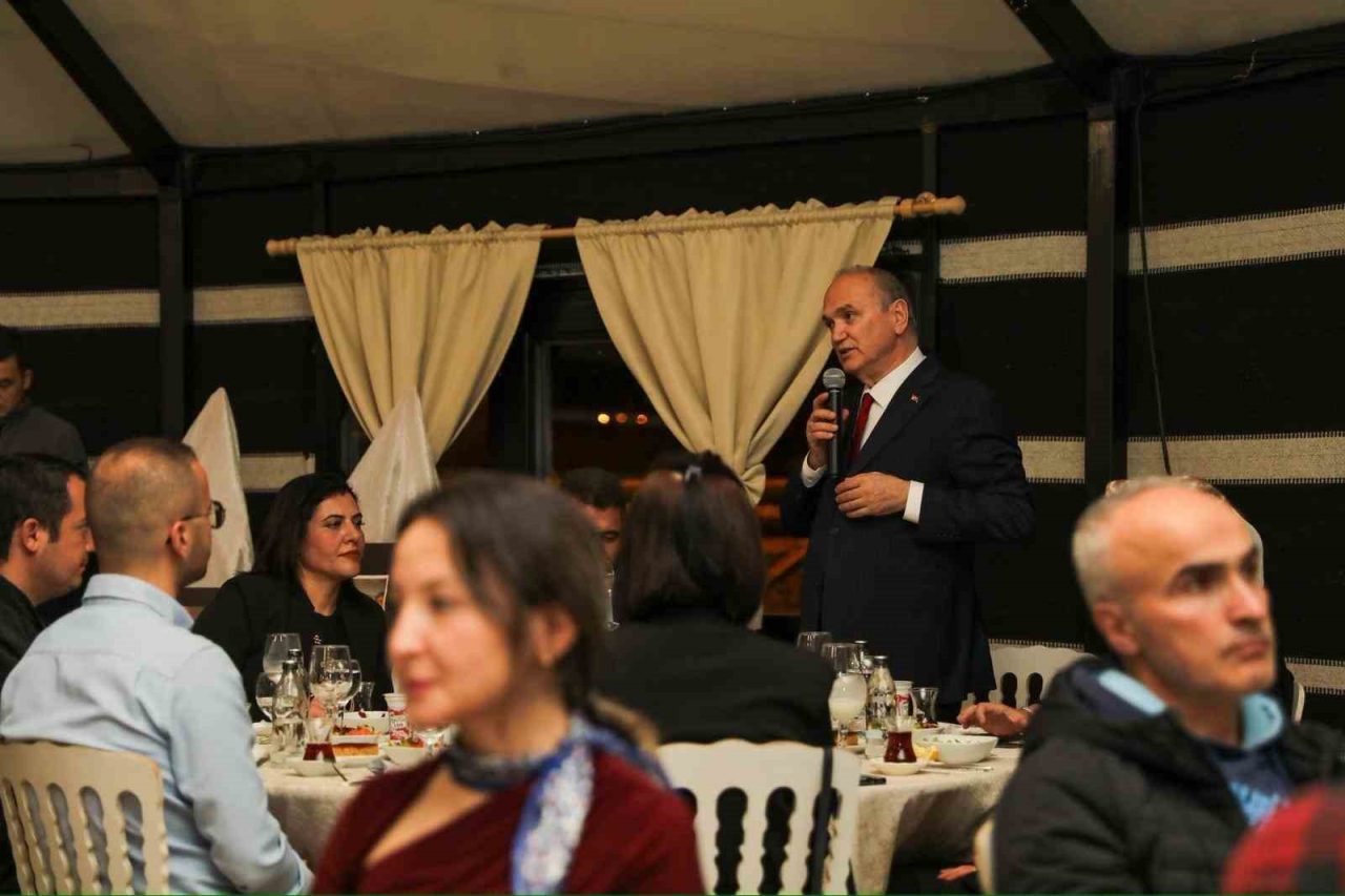 Başkan Faruk Özlü ise, öğretmenlerin toplumdaki rolüne vurgu yaparak, “Ben de bugün 2 öğretmenimi aradım. Öğretmenler Günü’nü tebrik ettim, çok mutlu oldular. Ben de yıllar sonra onlarla görüşmüş olmaktan son derece mutlu oldum. Gerçekten Türk Milleti’nin en büyük düşmanı cehalet ve fakirlik. Bunu aşmanın yolu da eğitimden geçiyor. Türkiye’nin kalkınması, büyümesi, güçlenmesi için nitelikli insan kaynağına ihtiyacımız var. O nitelikli insan kaynağının yetiştirileceği merkezler de sizin görev yaptığınız okullar. Göreviniz çok önemli, sorumluluğunuz çok ağır. Bu vesileyle ben 24 Kasım Öğretmenler Günü’nün hayırlı olmasını diliyorum. Hepinize başarılar diliyorum”