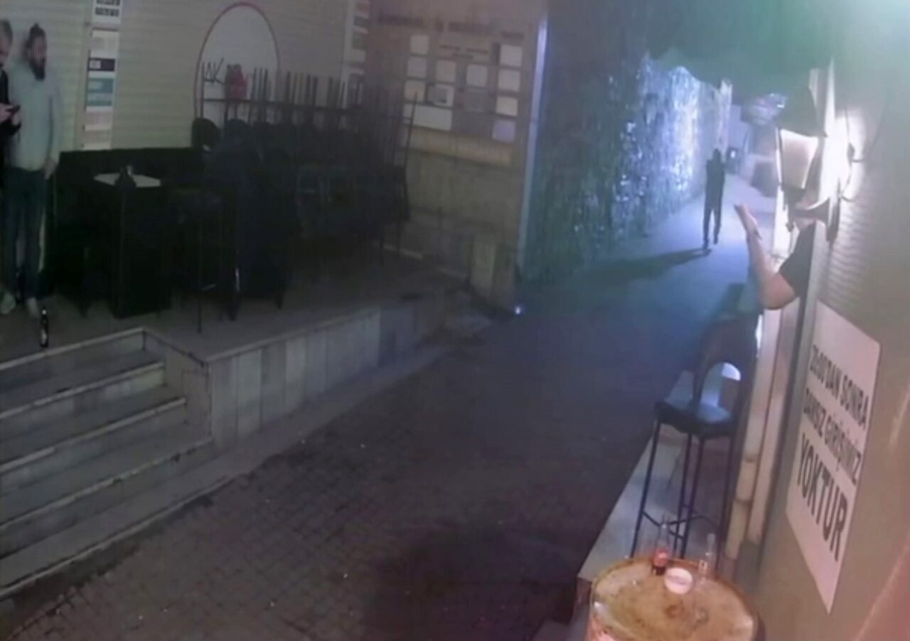 Öte yandan, saldırı anı iş yerinin güvenlik kameralarına yansıdı. Görüntülerde şüphelinin mekan önüne gelerek silahla ateş ettiği, ardından tekrar ateş etmek istediği sırada silahın tutukluk yaptığı ve olay yerinden kaçtığı görüldü.