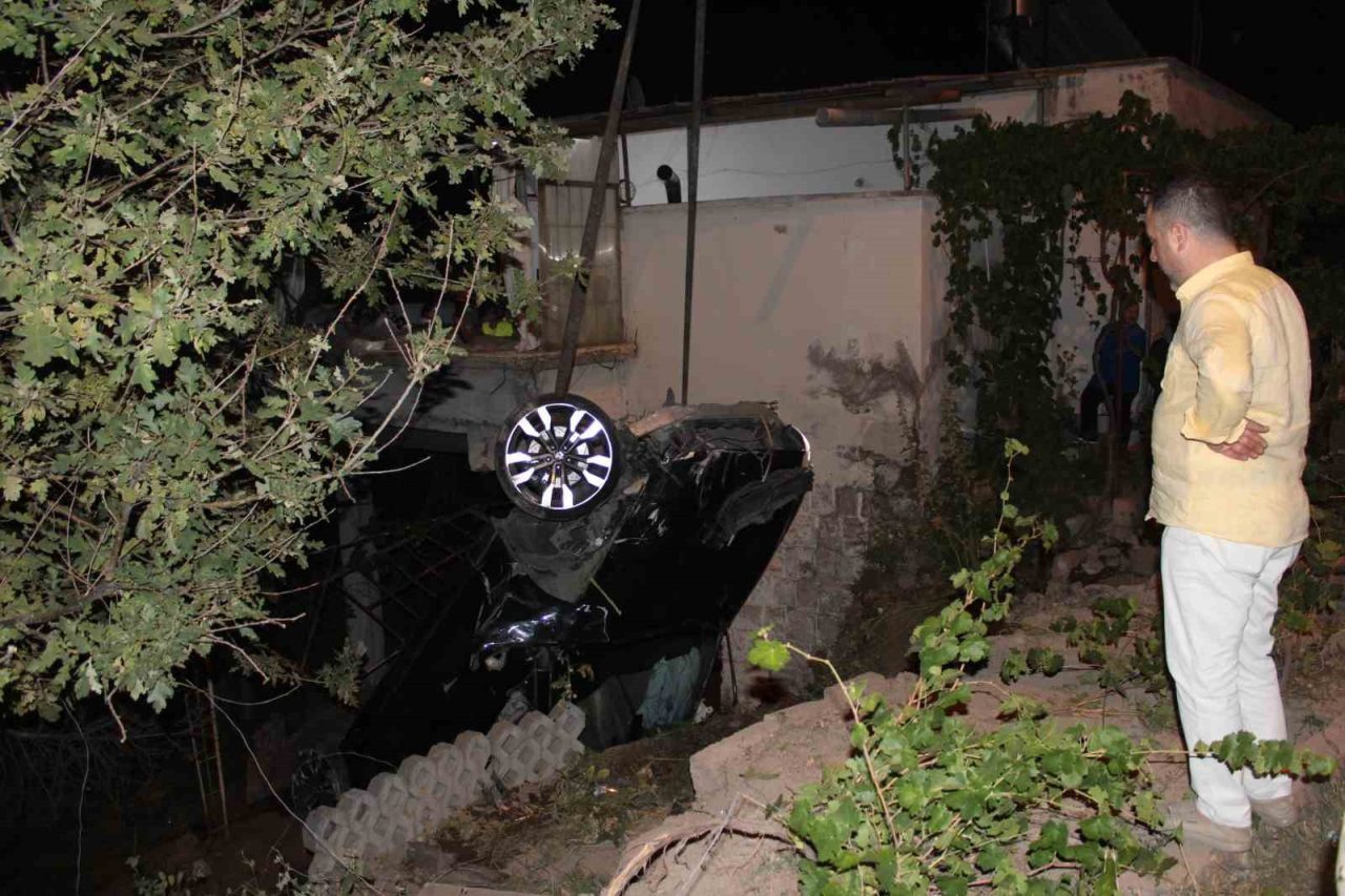 Kayseri’nin Talas ilçesinde direksiyon hakimiyetini kaybeden sürücü bir evin bahçesine uçtu. Kazada araçta bulunan 3 kişi yaralanırken, ev sahibi “deprem gibi bir şeydi” dedi.